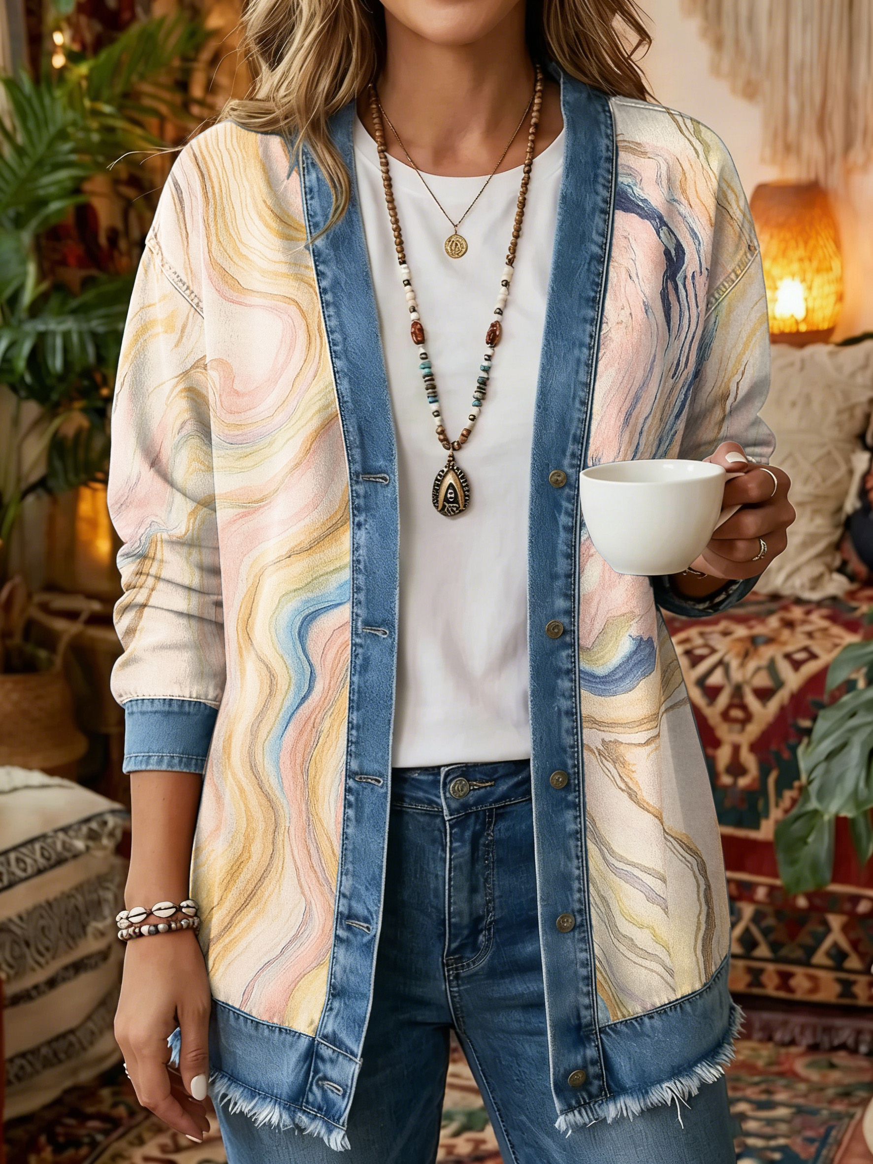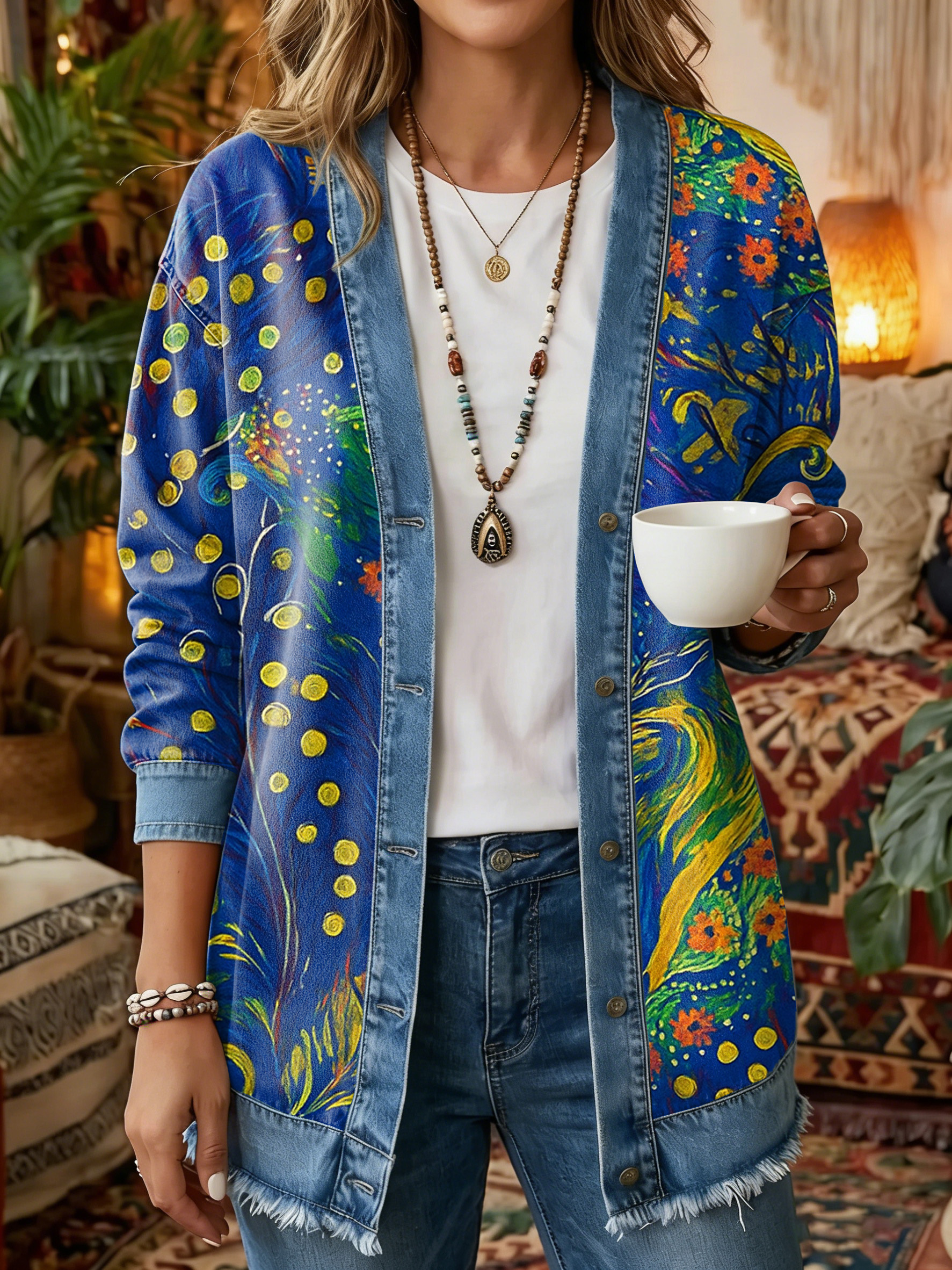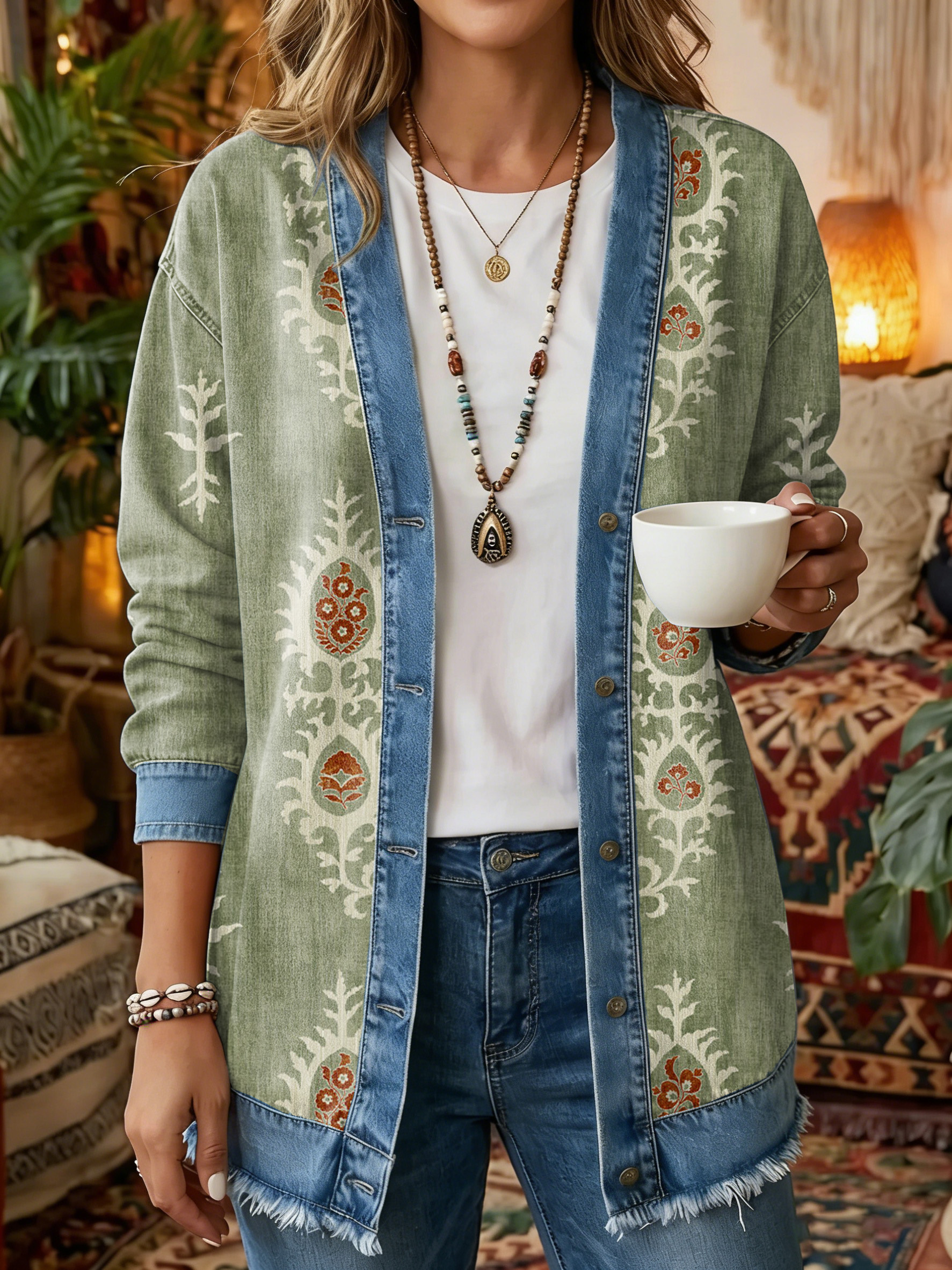 Women's Vintage Pattern Art Print Casual Long-sleeve Shirt Jacket