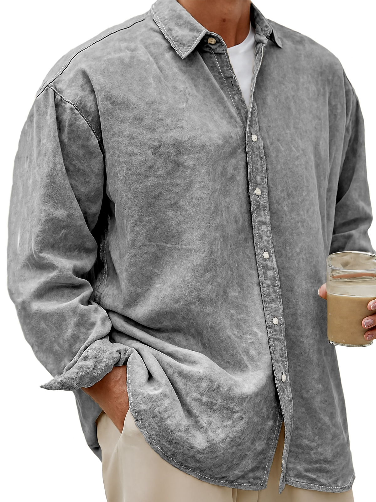 Men's Vintage Dyed Lyocell Casual Everyday Long-sleeved Shirt