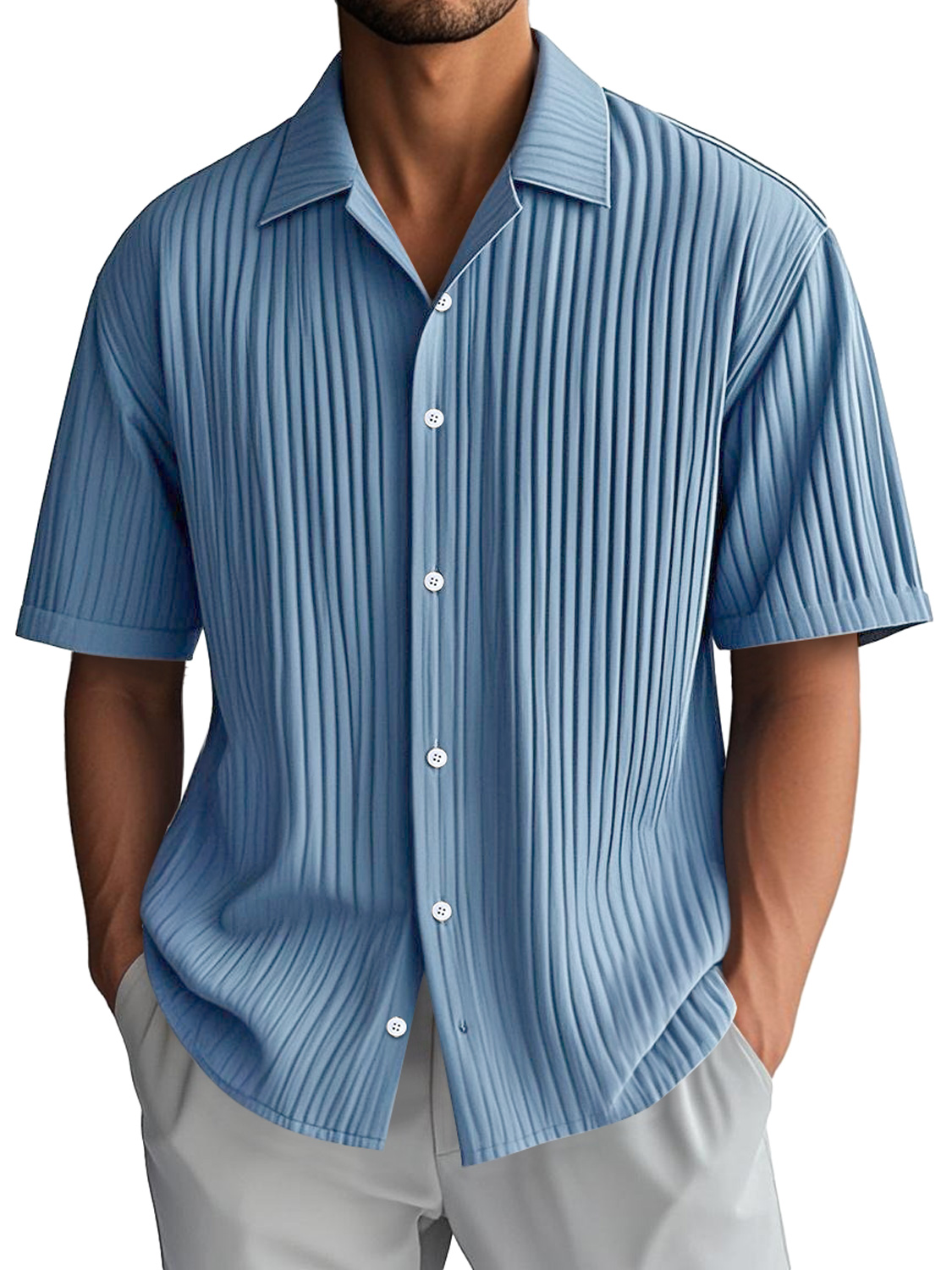 Men's Fashion Casual Pleated Fabric Short Sleeve Shirt