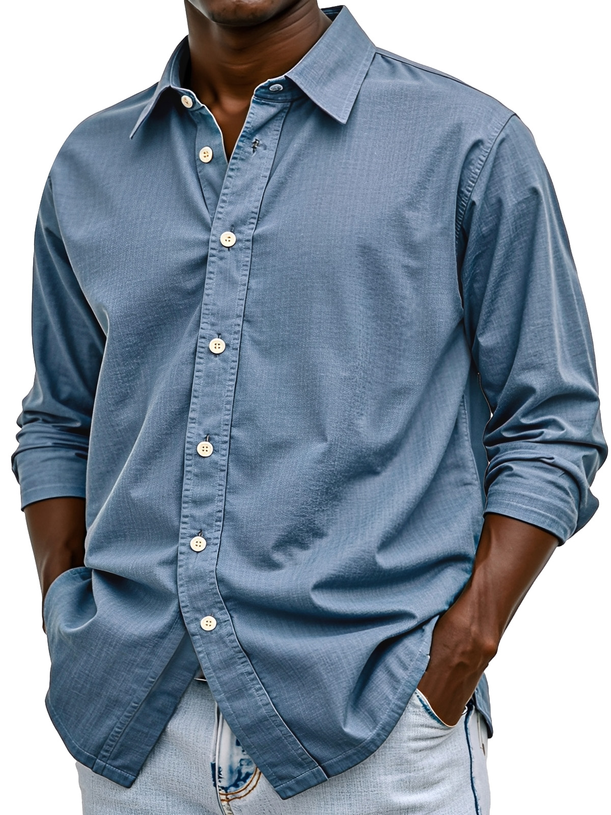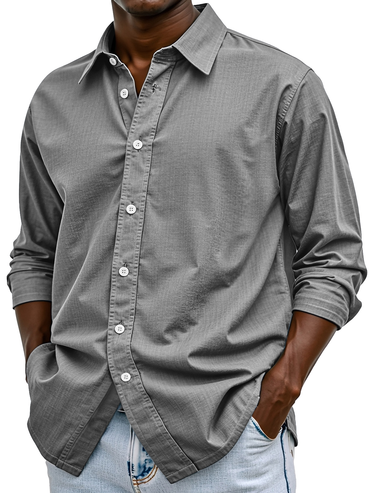 Men's Solid Color Casual Breathable Fabric Button Long Sleeve Shirt