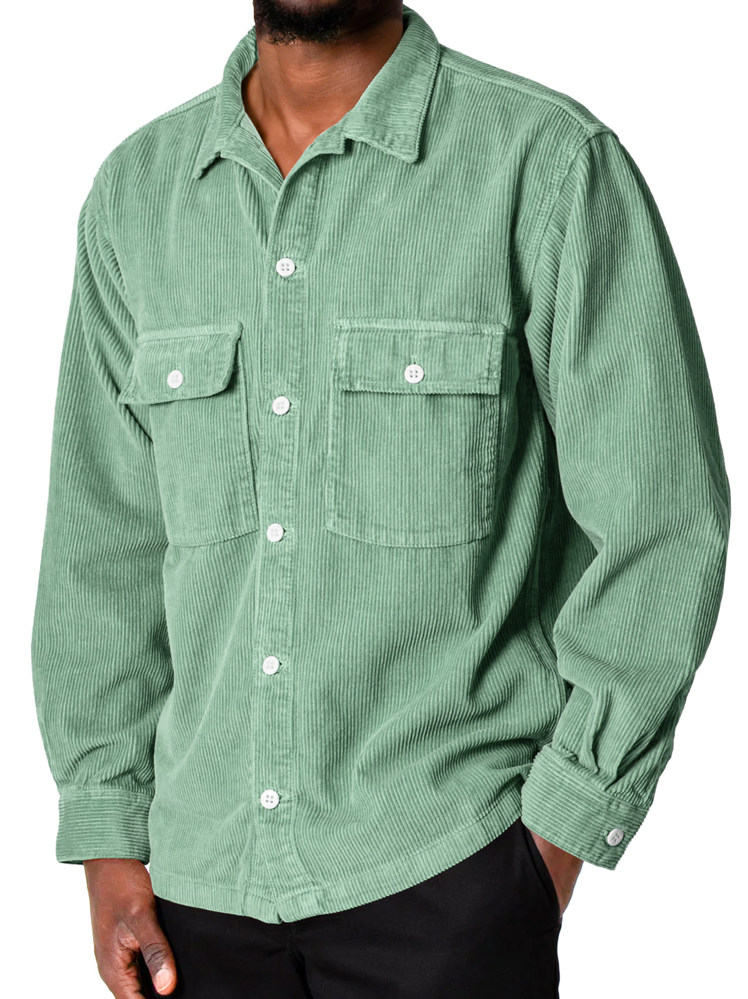 Men's Everyday Corduroy Double Pocket Casual Comfort Long Sleeve Shirt