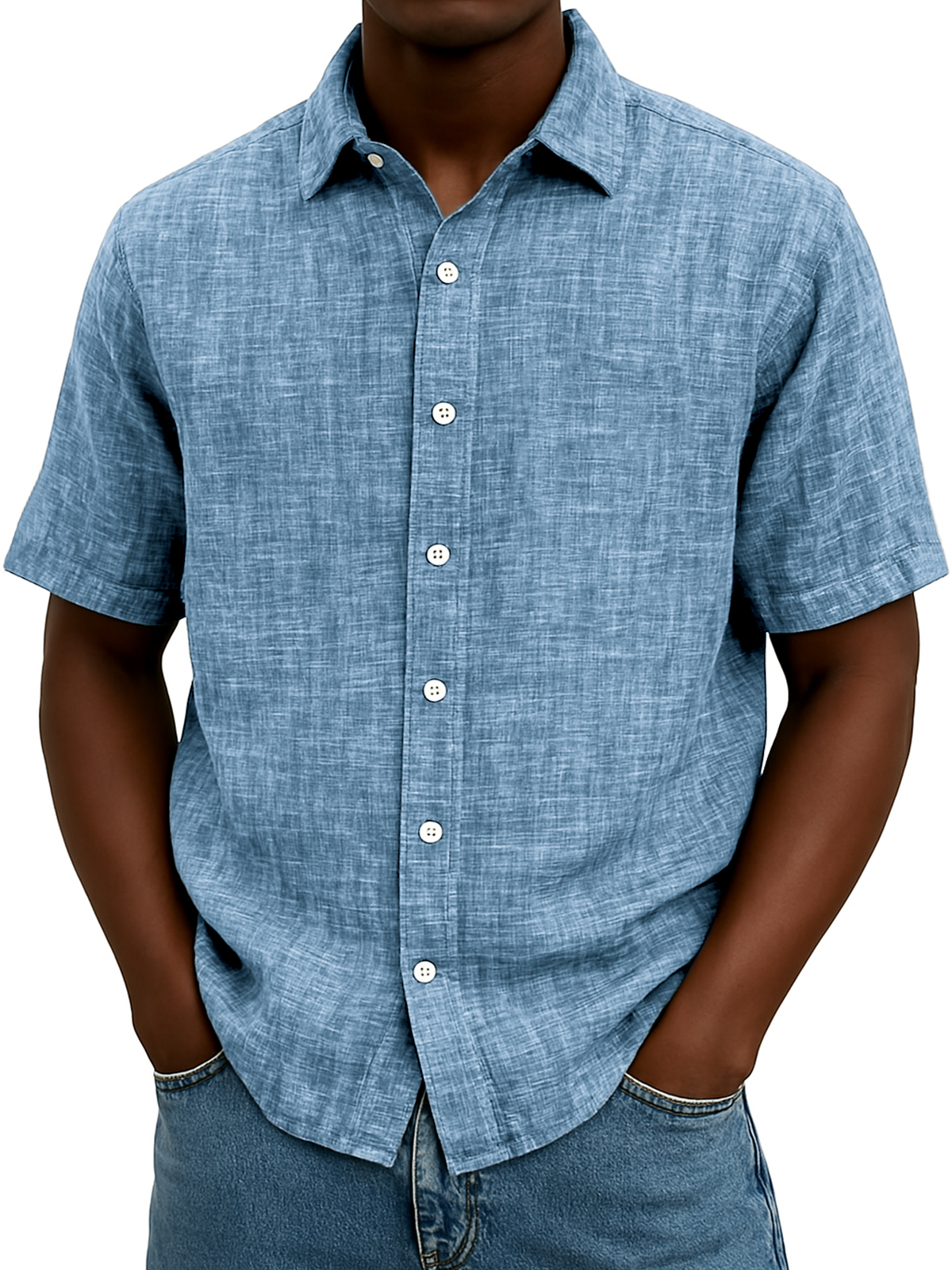 Men's Cotton Hawaiian Summer Comfortable Solid Color Short Sleeve Shirt