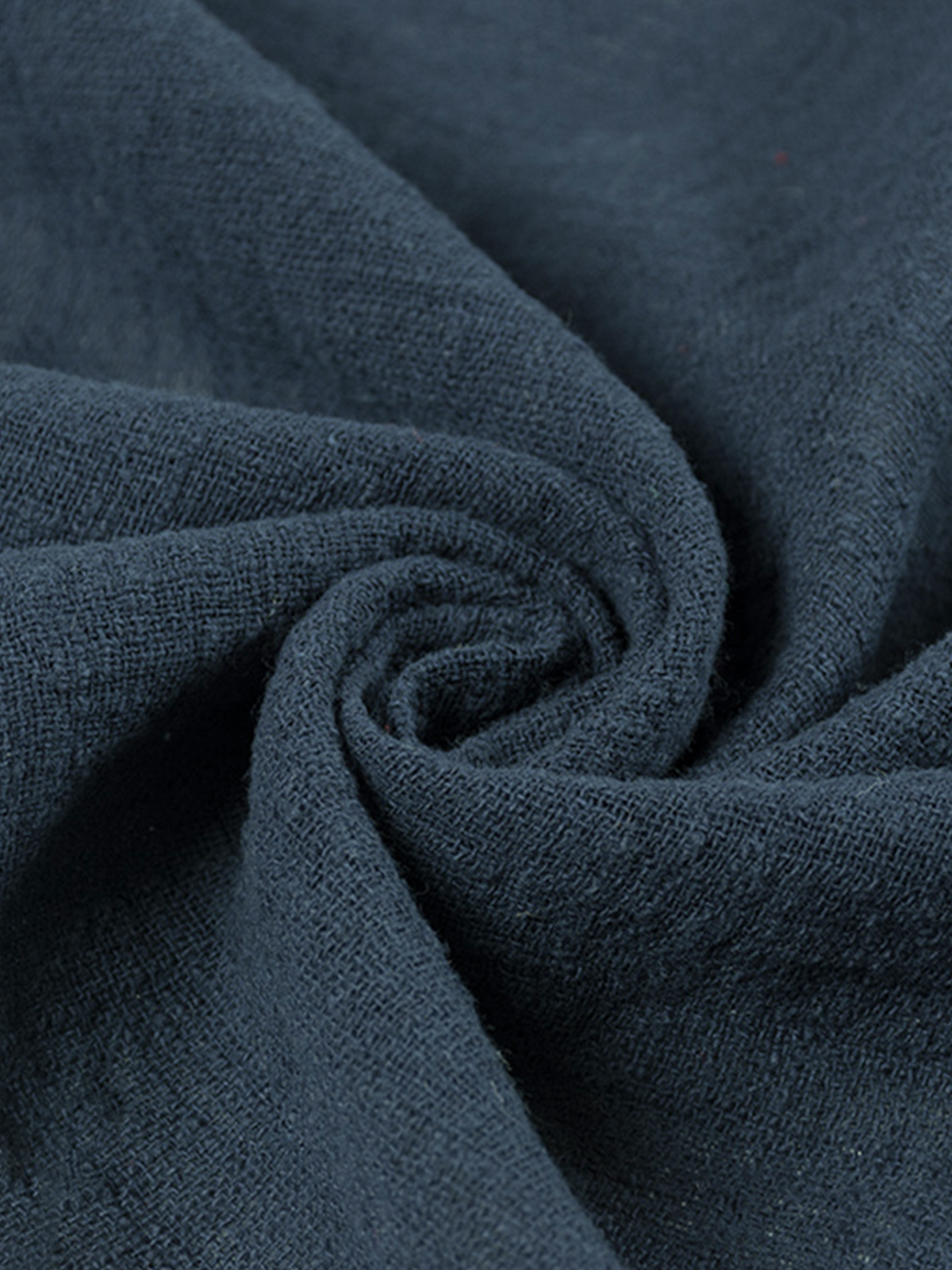 Men's Comfort Gauze Pleated Pocket Cotton Long Sleeve Shirt