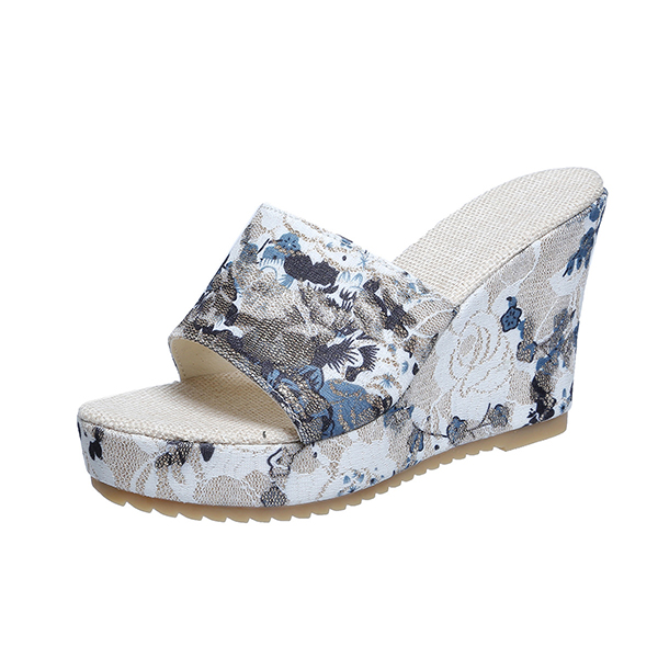 😍Last Day 50% OFF😍-Women's Vintage Floral Print Peep Toe Wedge Slingback Sandals