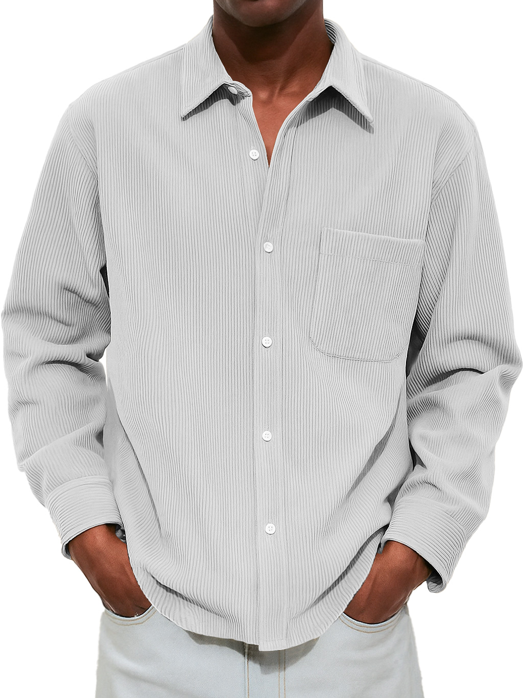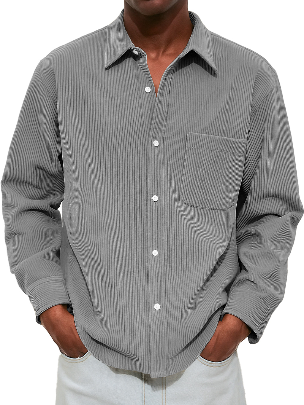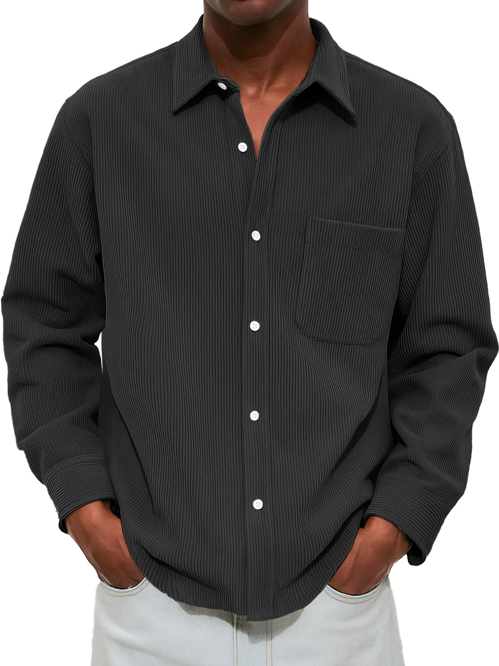 Men's Casual And Comfortable Long-sleeved Shirt With Ribbed Pockets