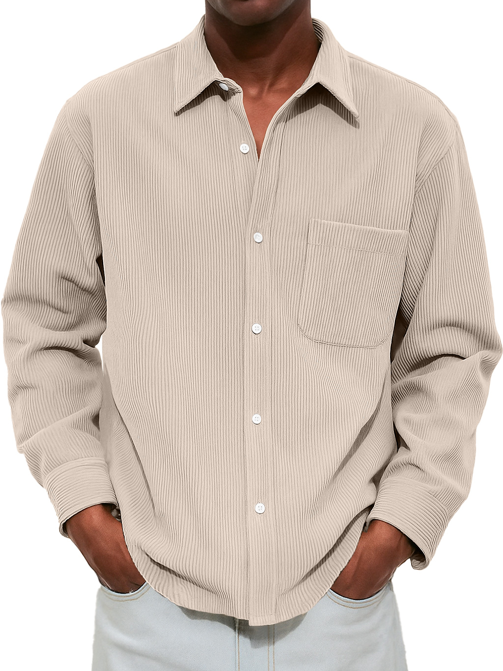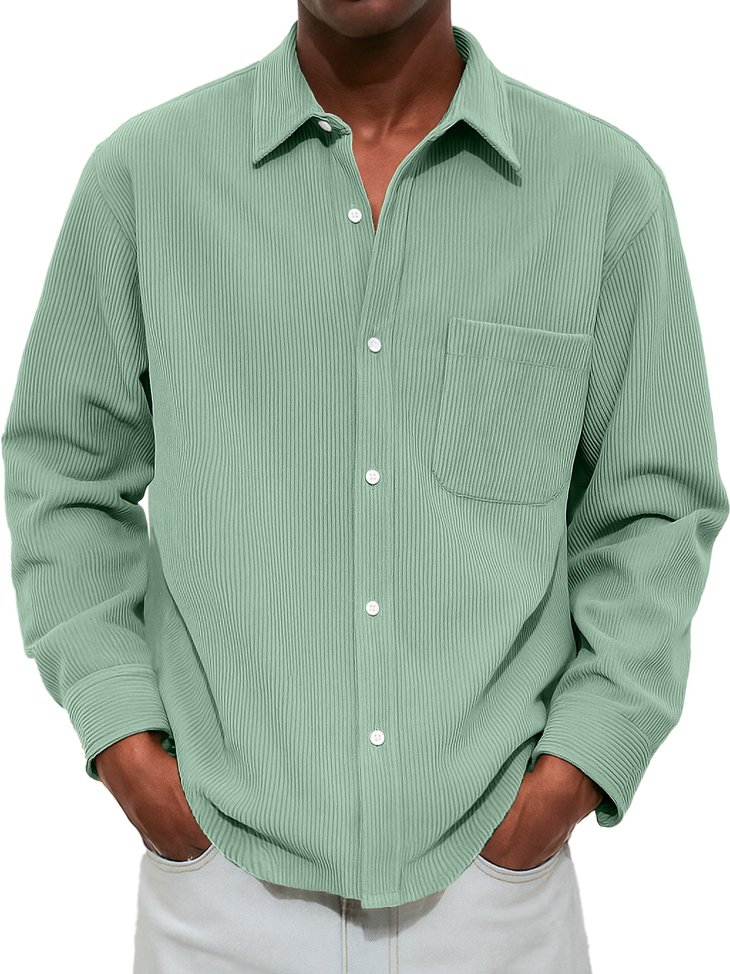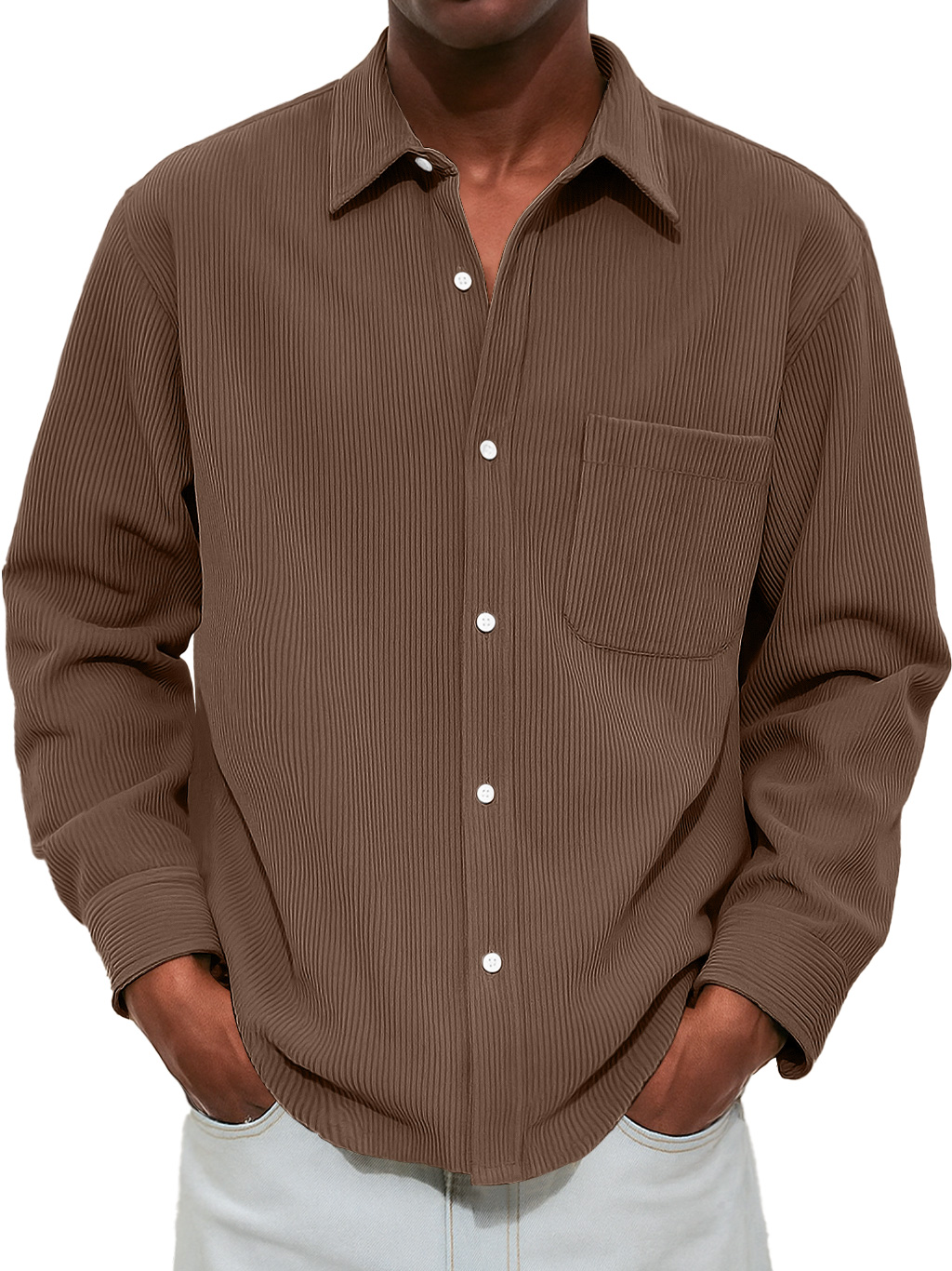 Men's Casual And Comfortable Long-sleeved Shirt With Ribbed Pockets