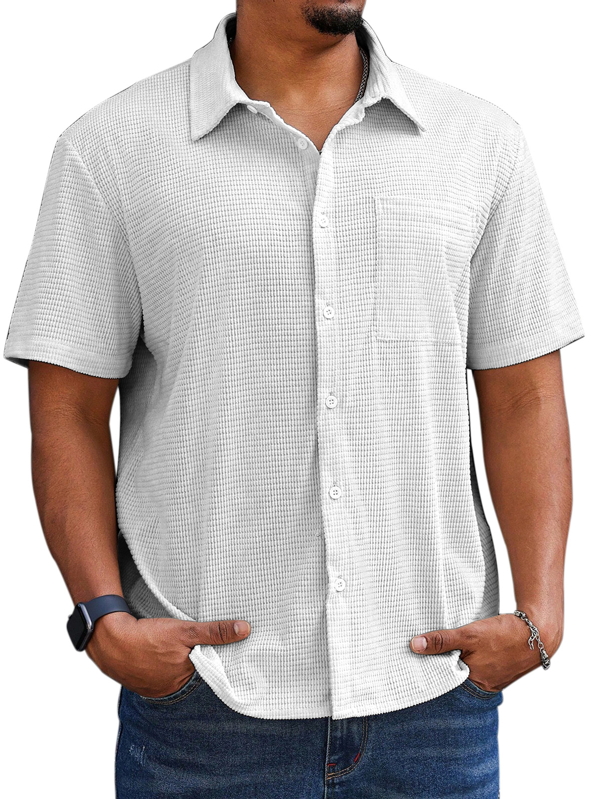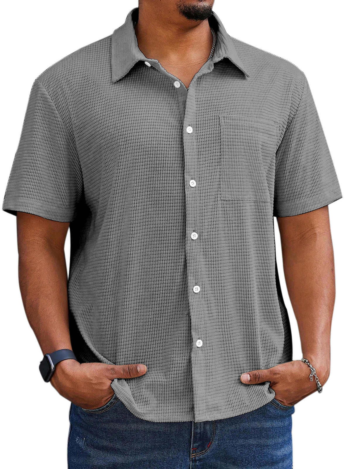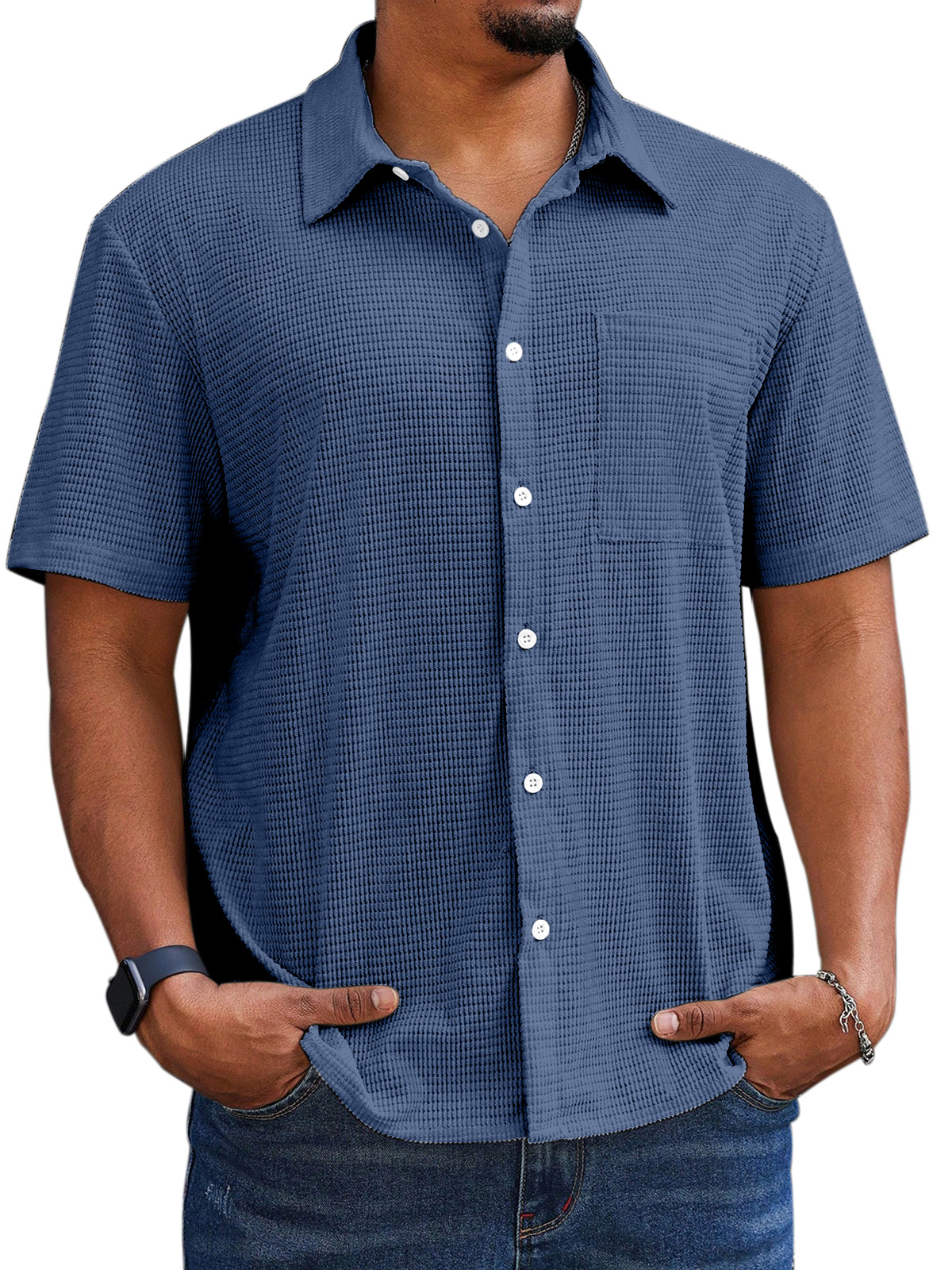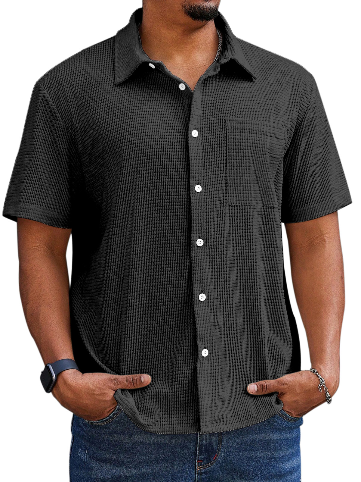 Men's Casual Simple Comfortable Waffle Short Sleeve Shirt