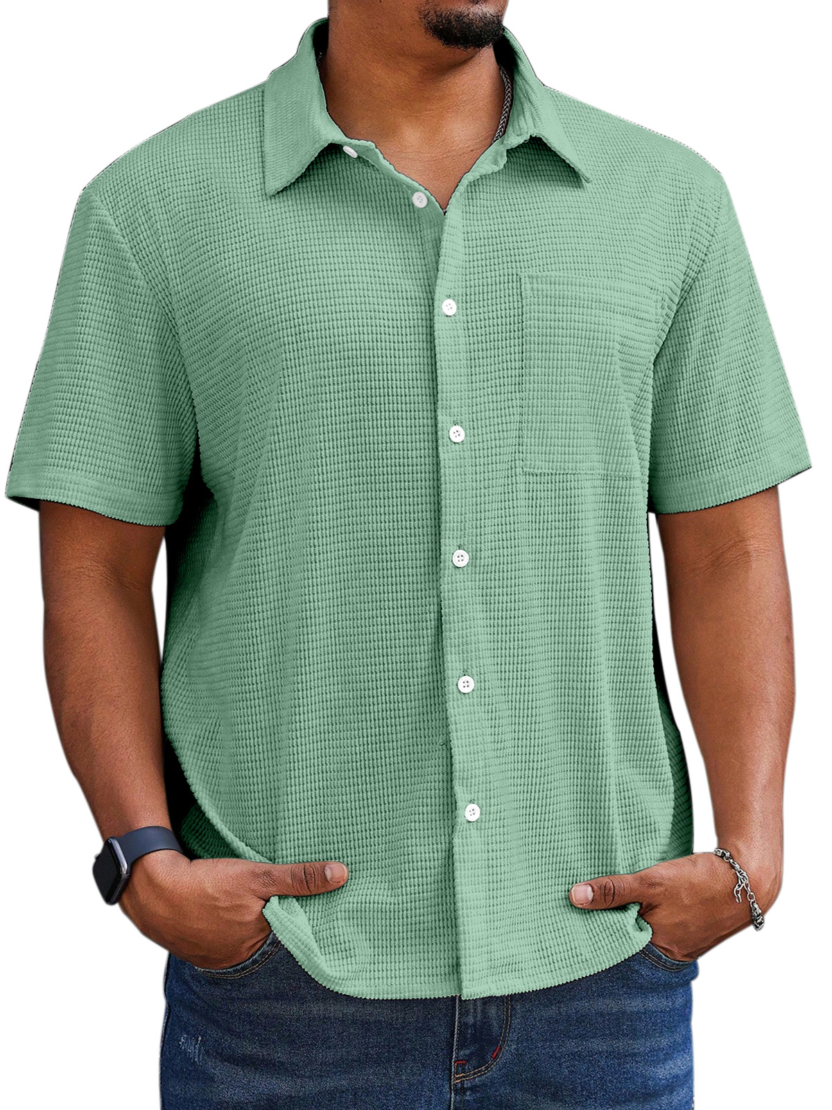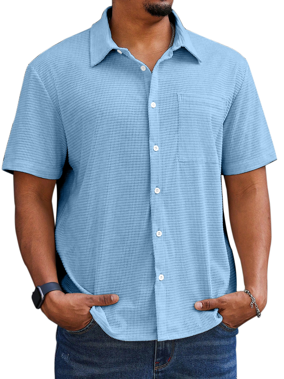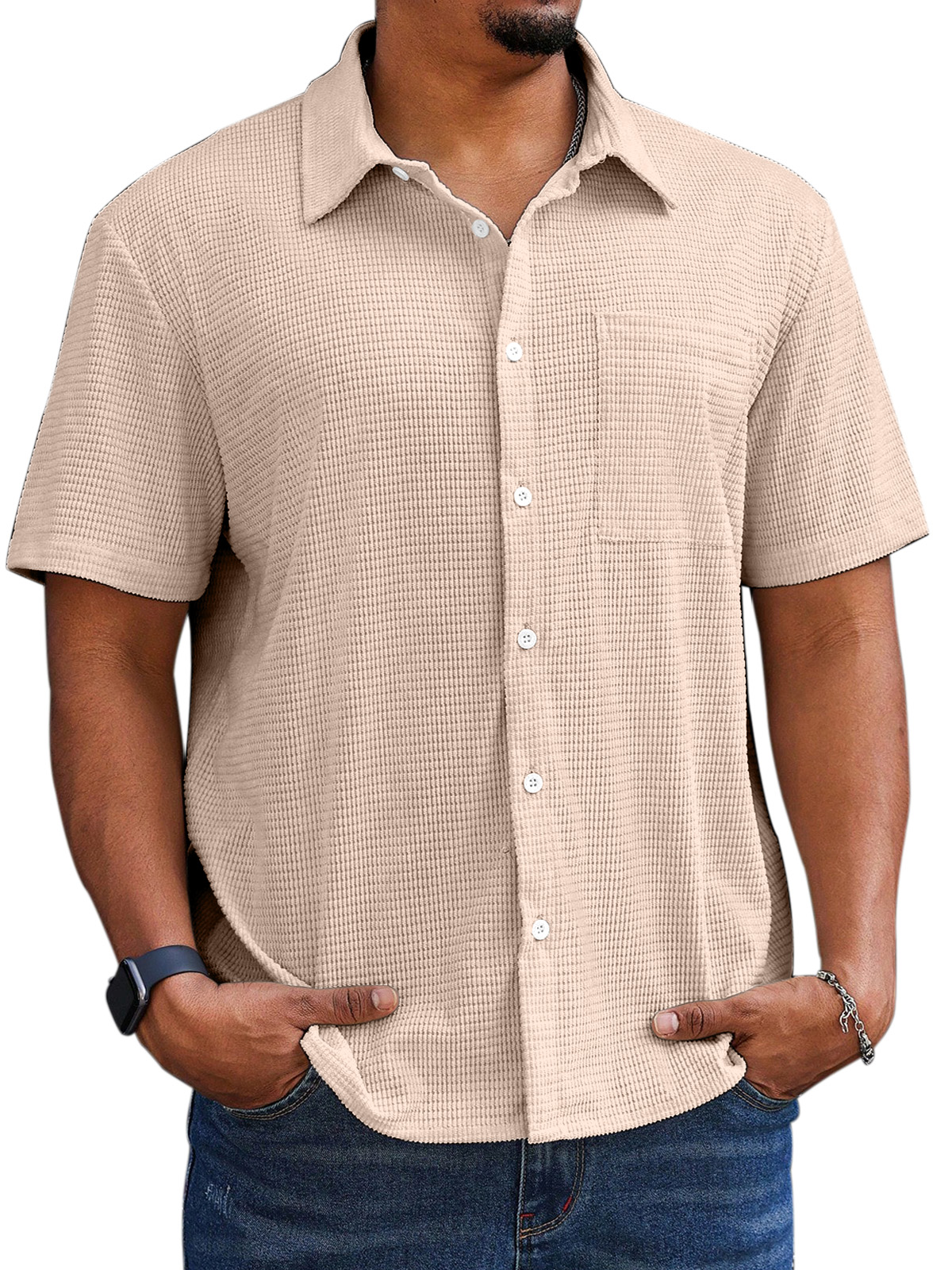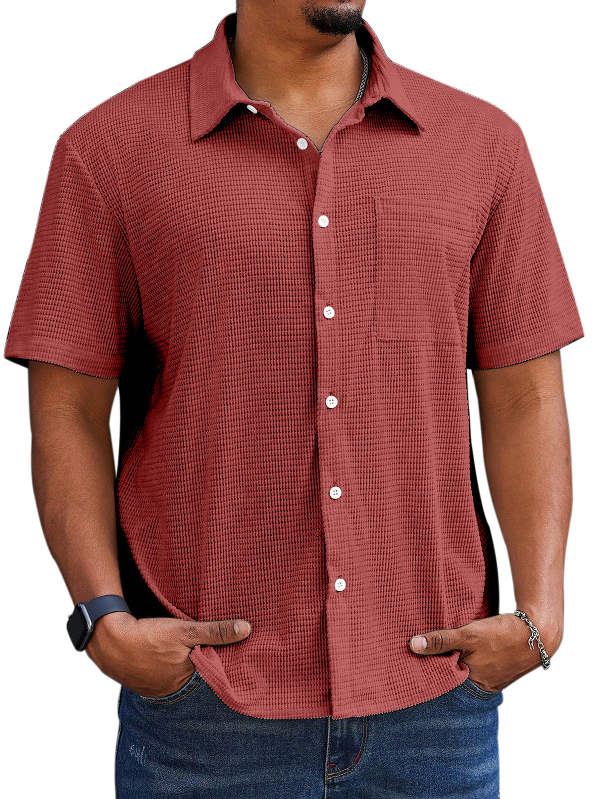 Men's Casual Simple Comfortable Waffle Short Sleeve Shirt