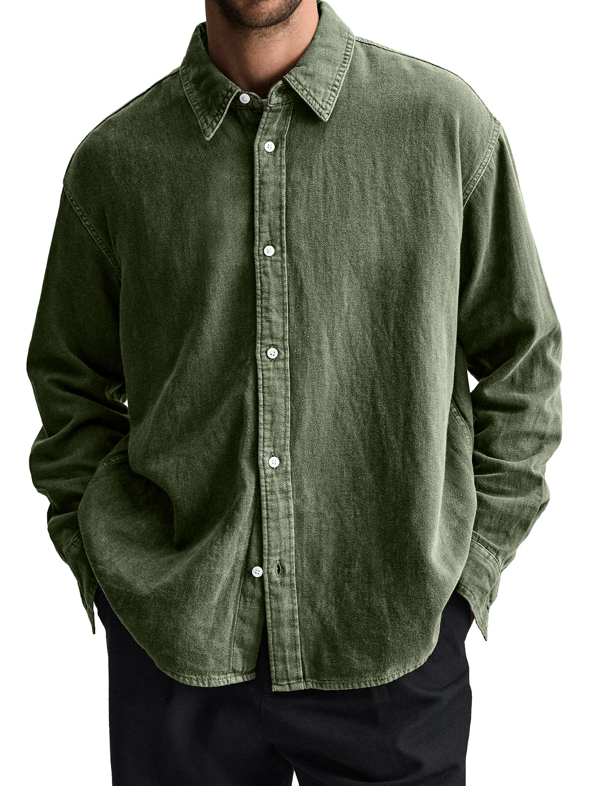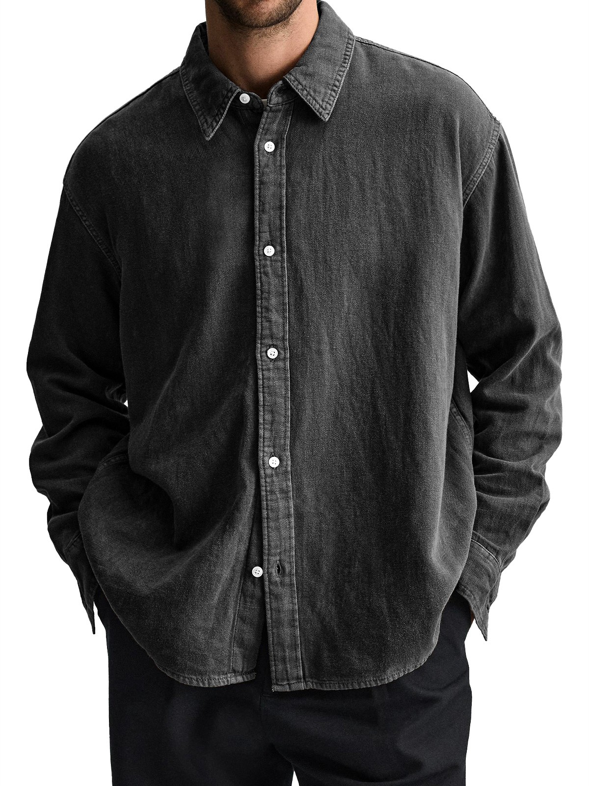 Men's Everyday Casual Lapel Solid Color Comfortable Long Sleeve Shirt
