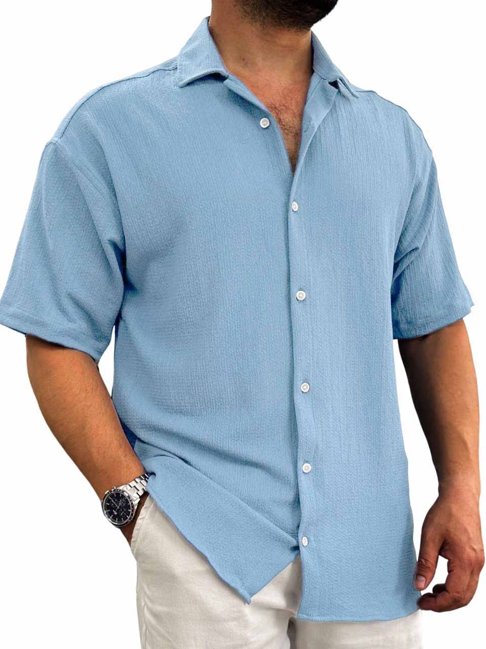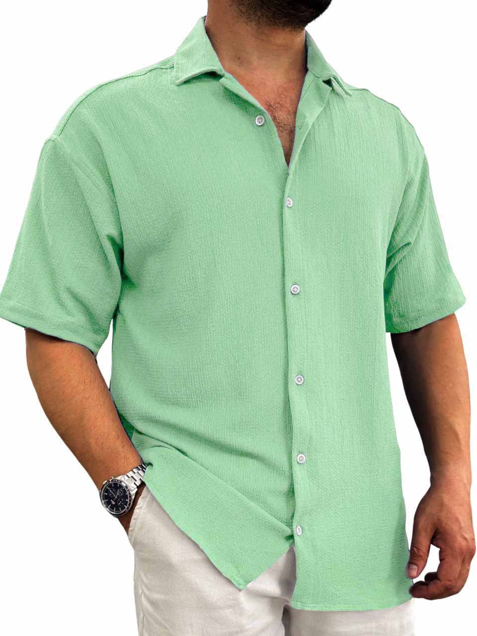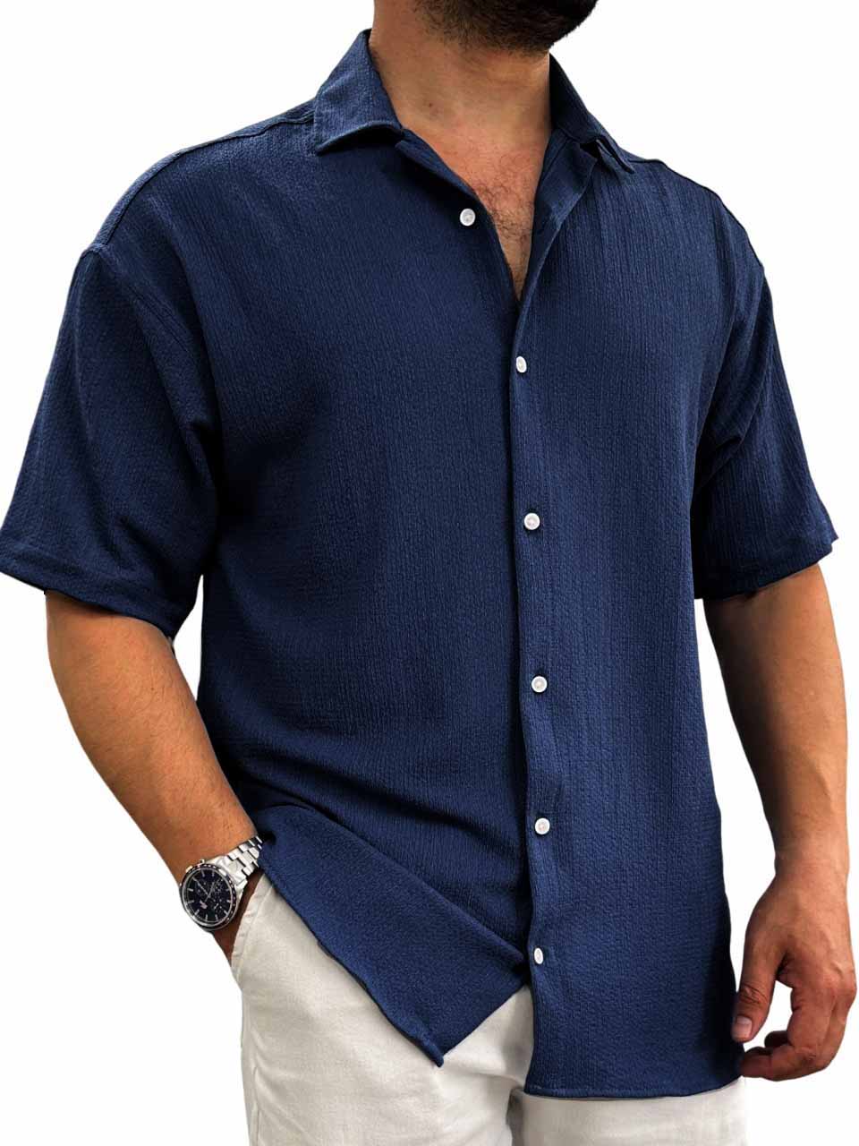 Men's Hawaiian casual pit fabric short-sleeved shirt