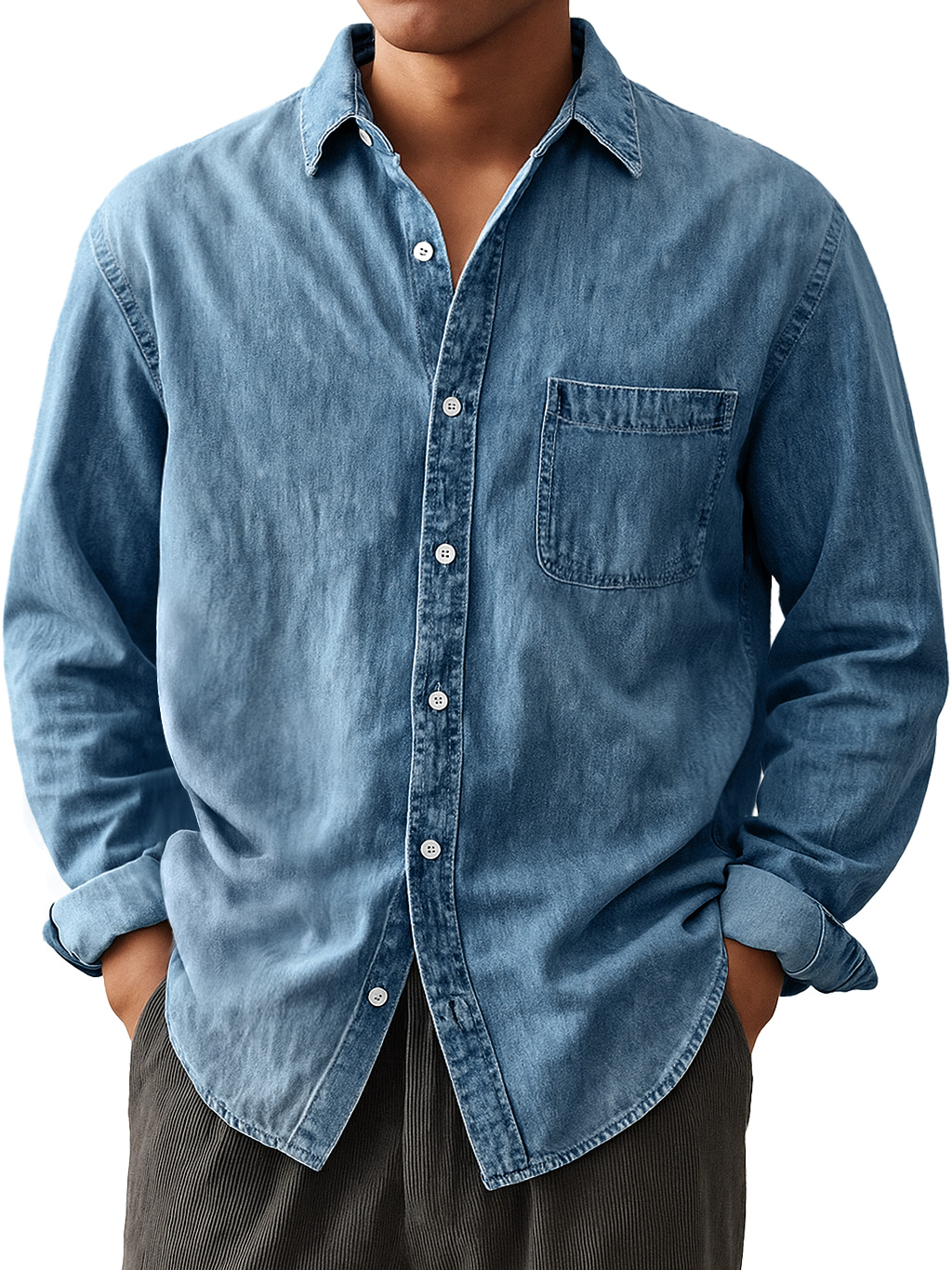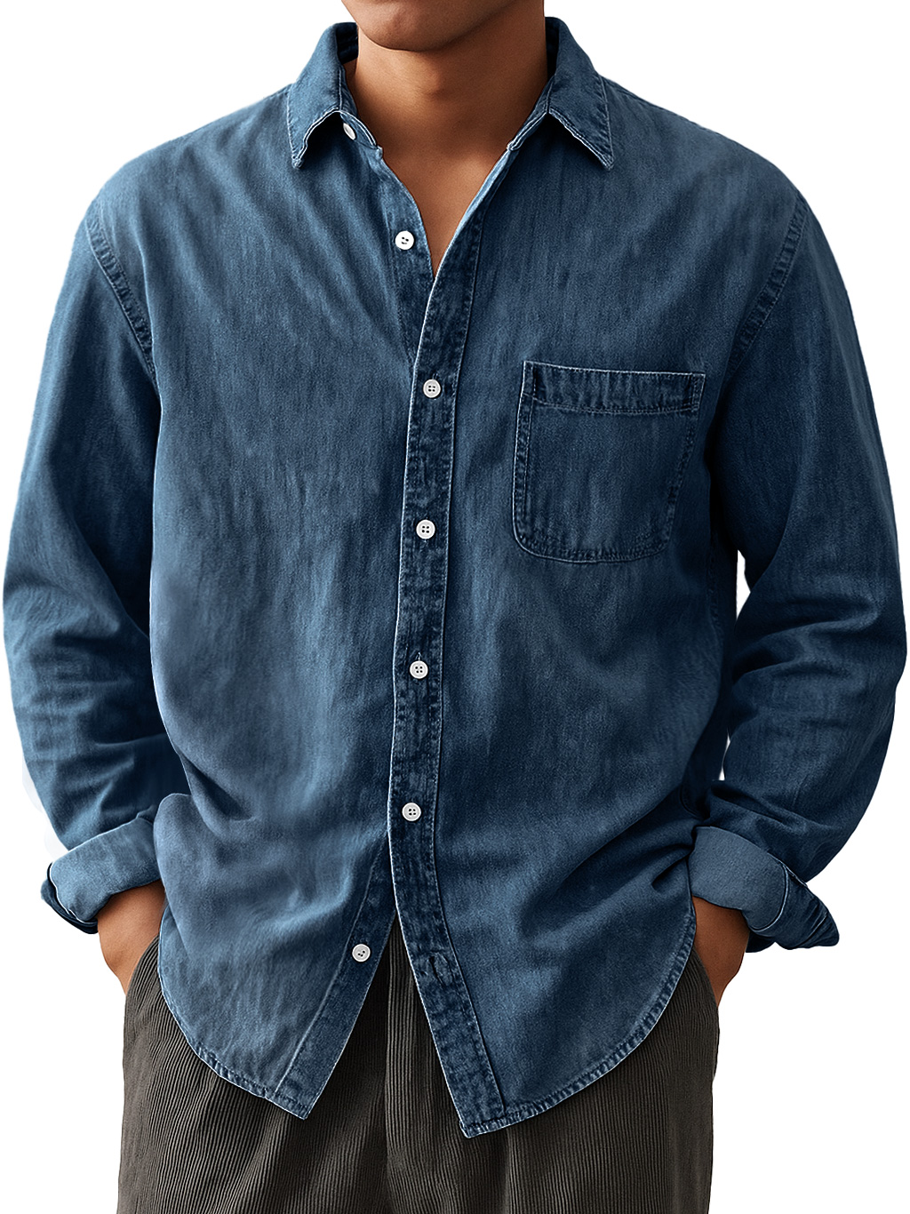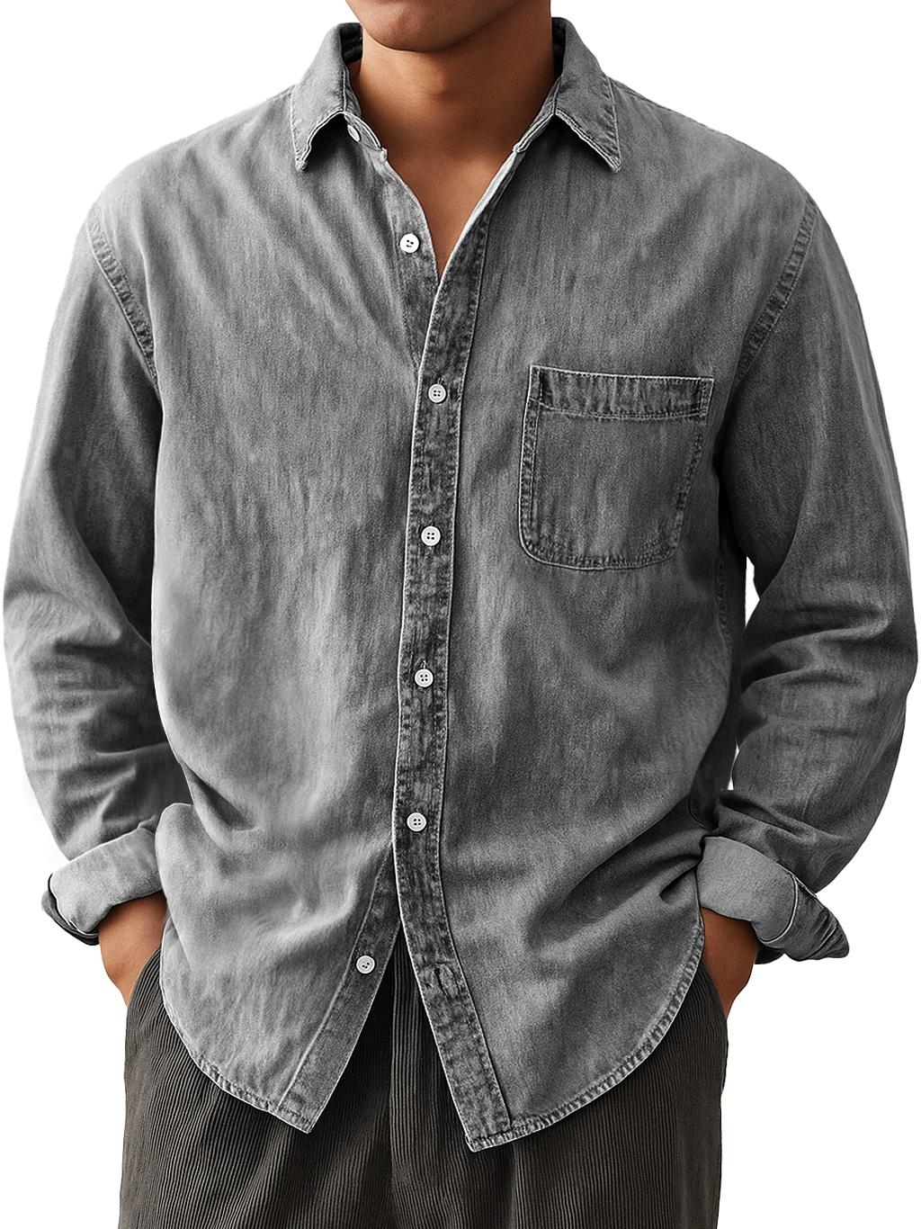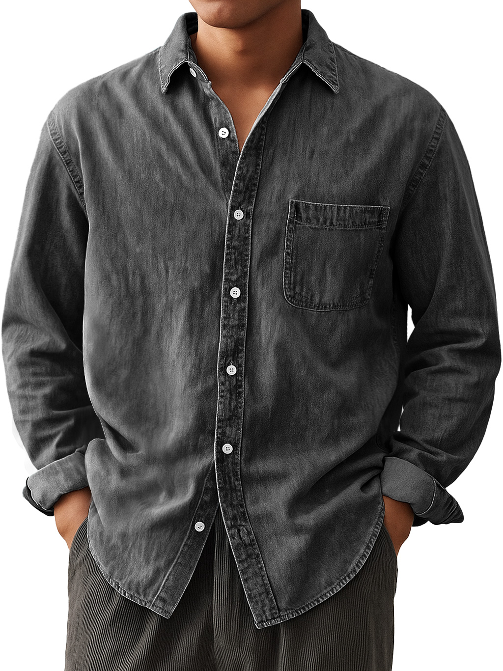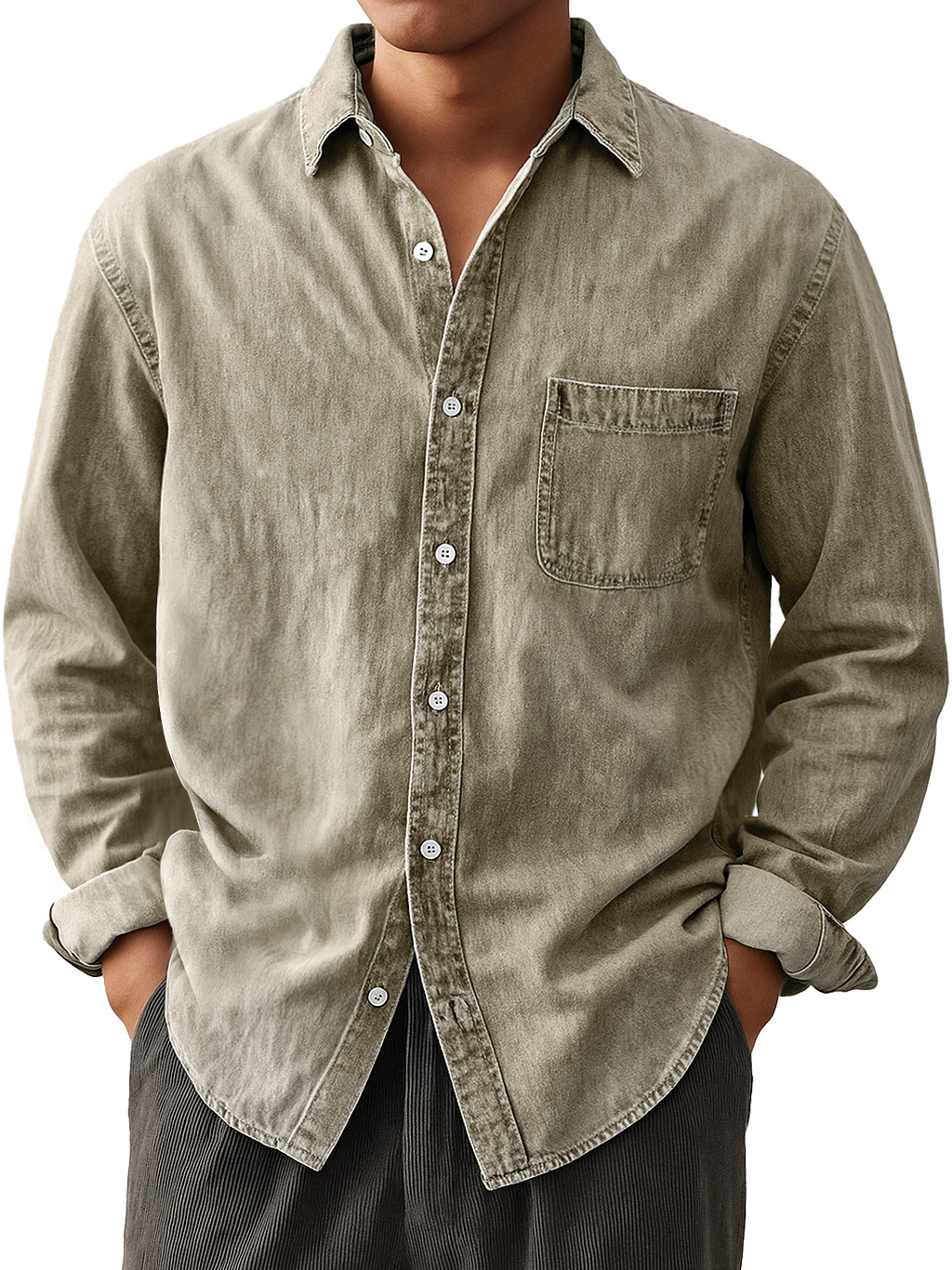 Men's Retro Everyday Lapel Pocket Casual Long Sleeve Shirt