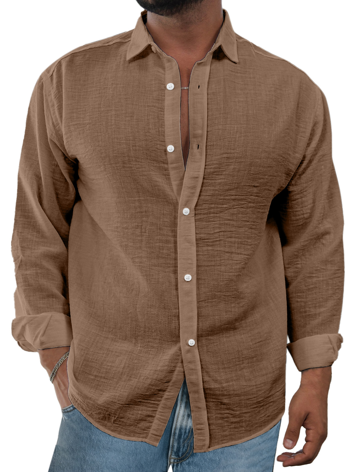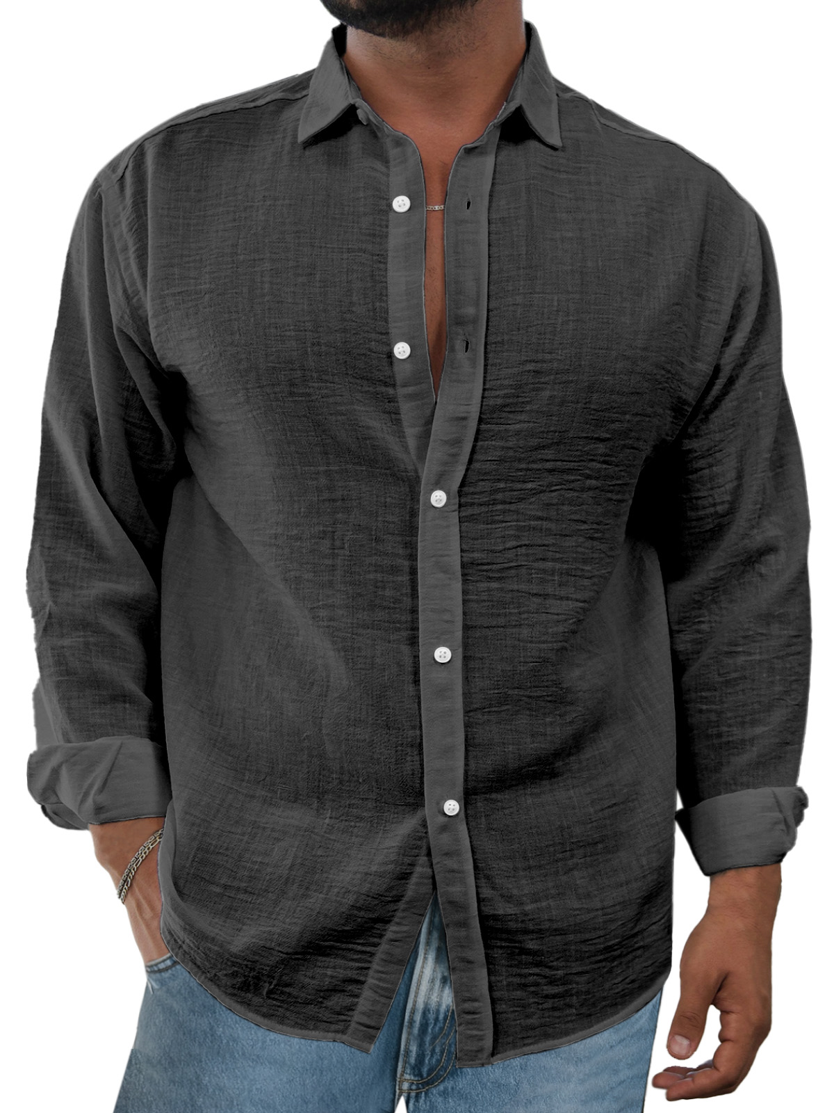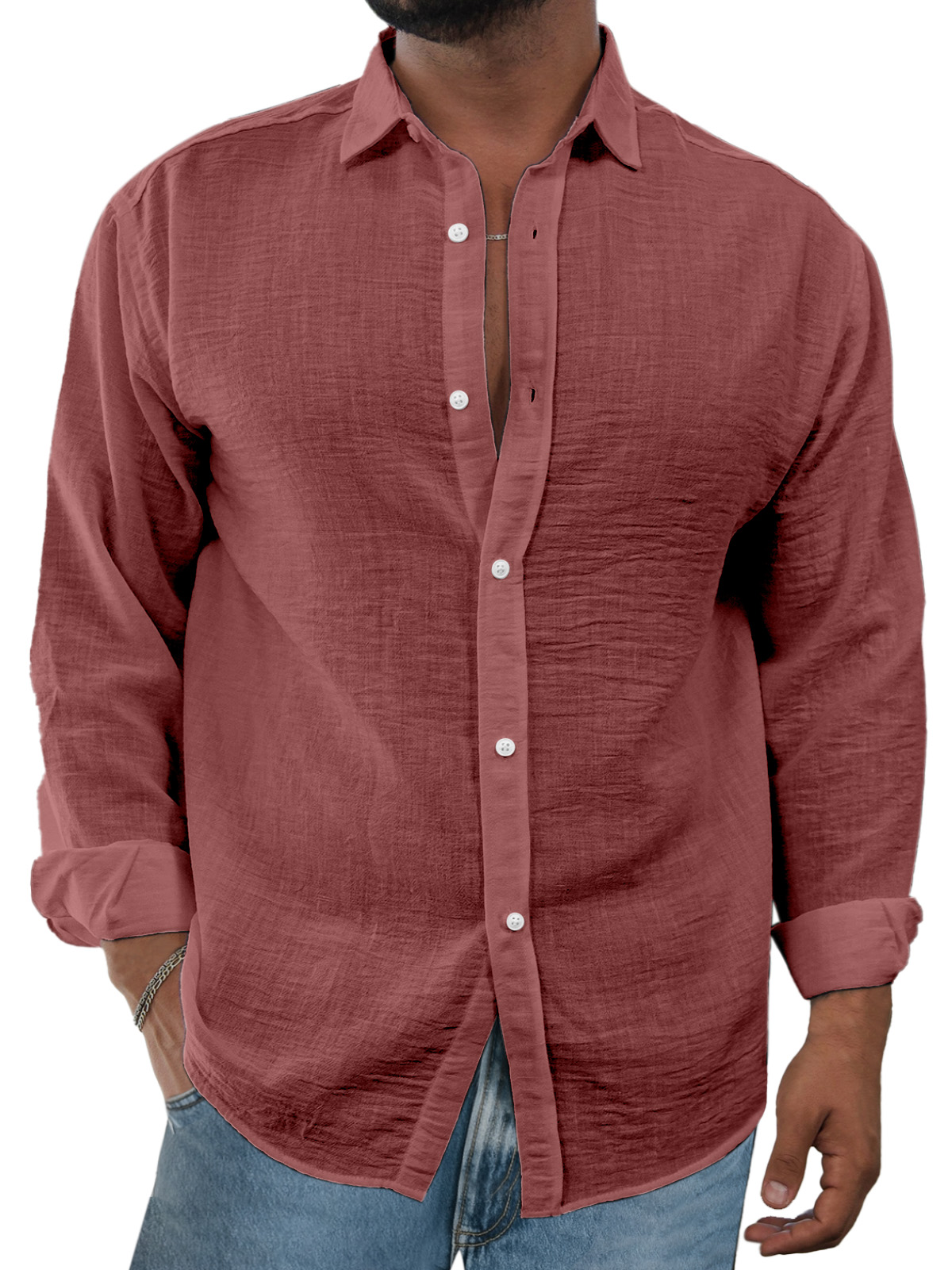 Men's Simple And Comfortable Solid Color Imitation Linen Lapel Long-sleeved Shirt