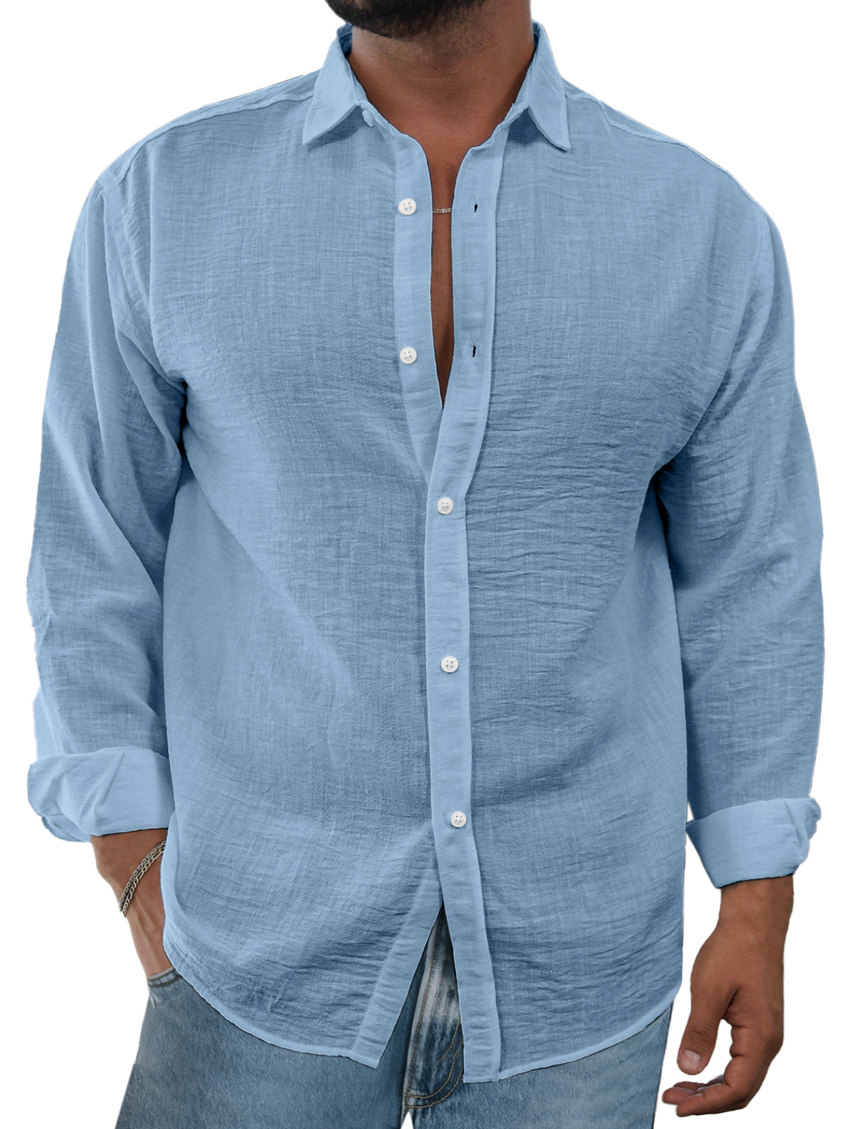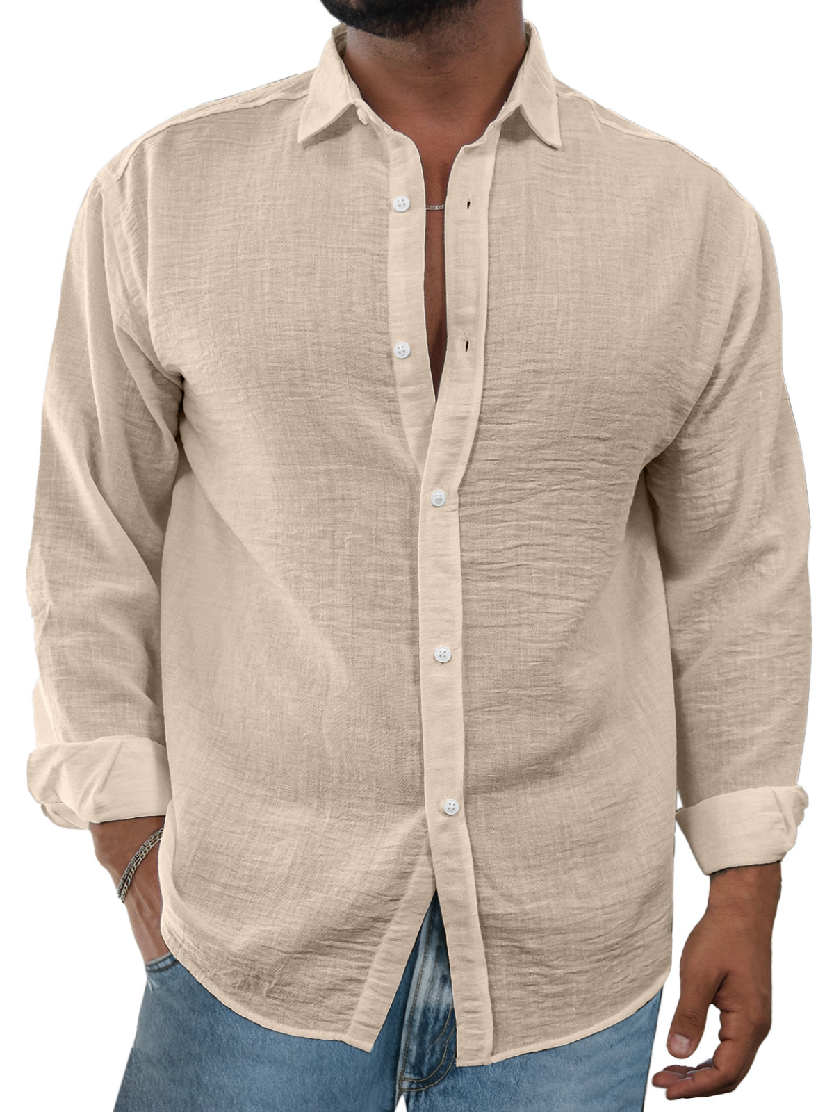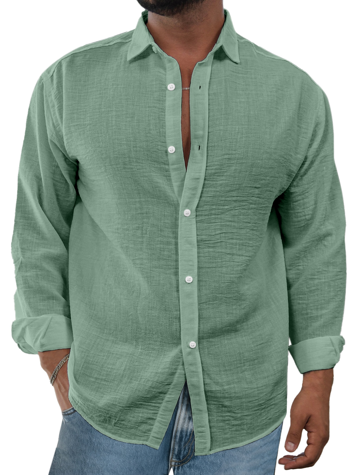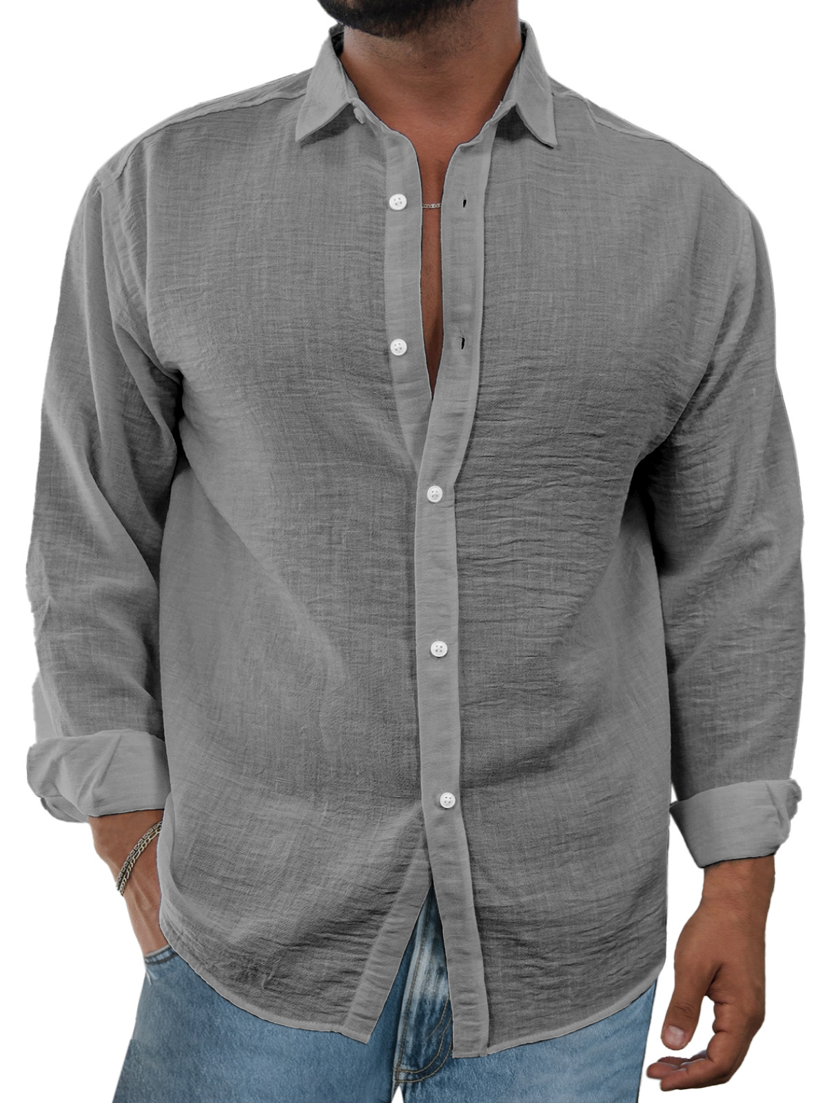 Men's Simple And Comfortable Solid Color Imitation Linen Lapel Long-sleeved Shirt