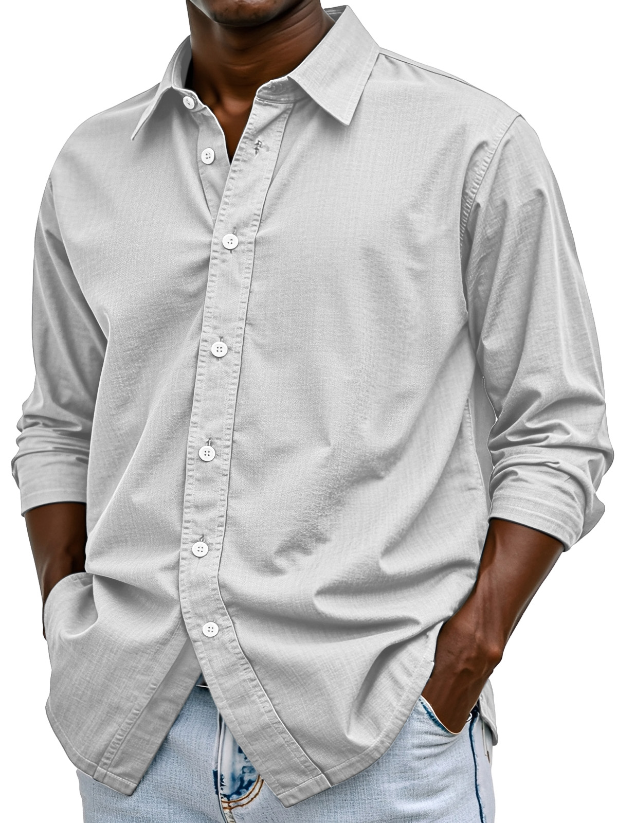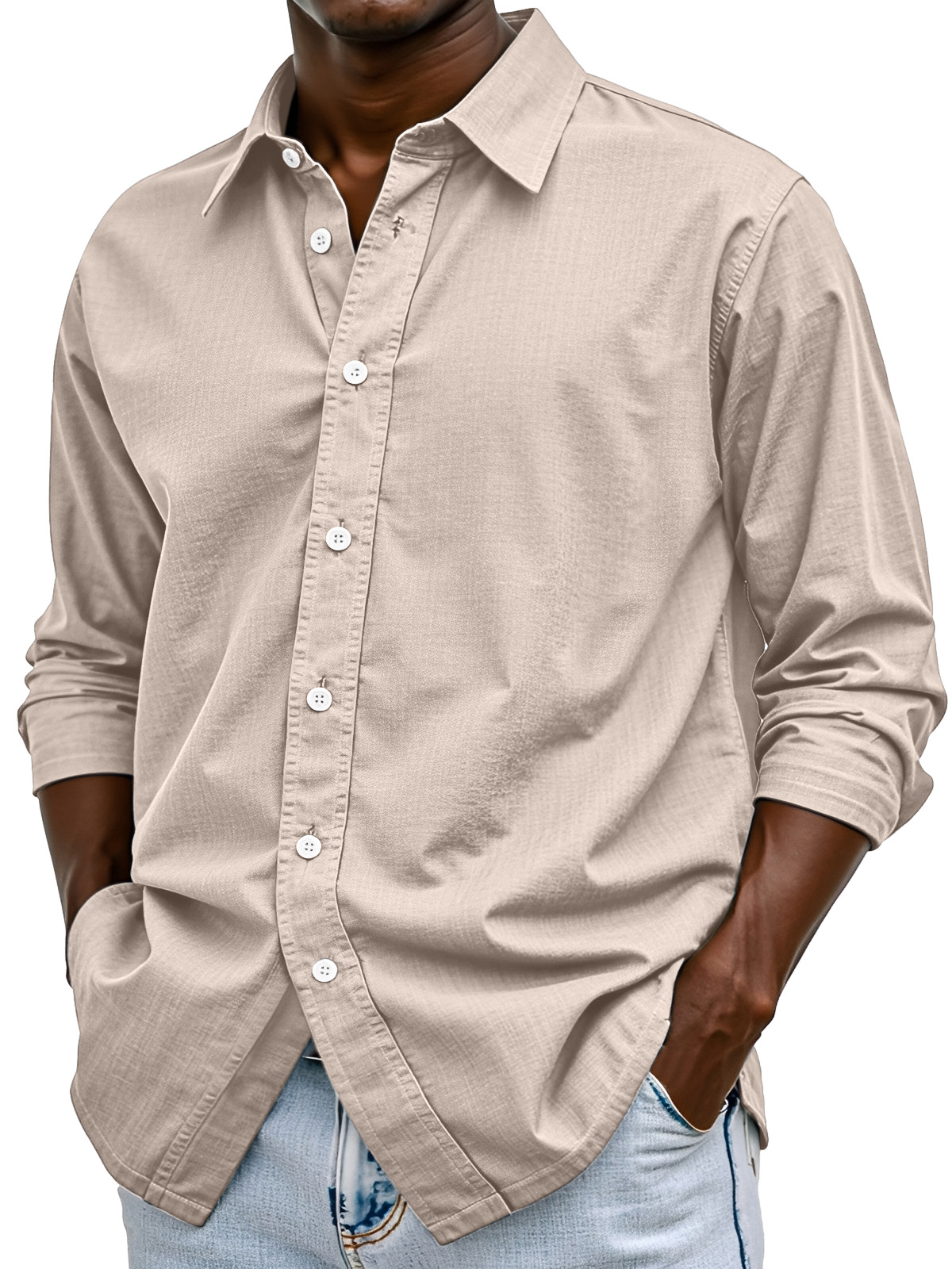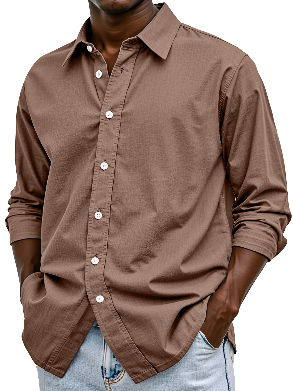 Men's Simple Casual Solid Color Comfortable Loose Lapel Long-sleeved Shirt