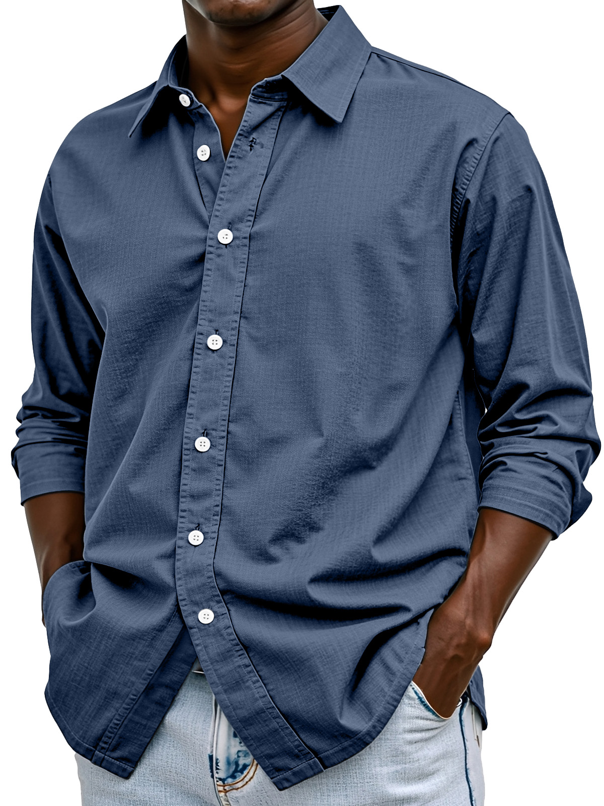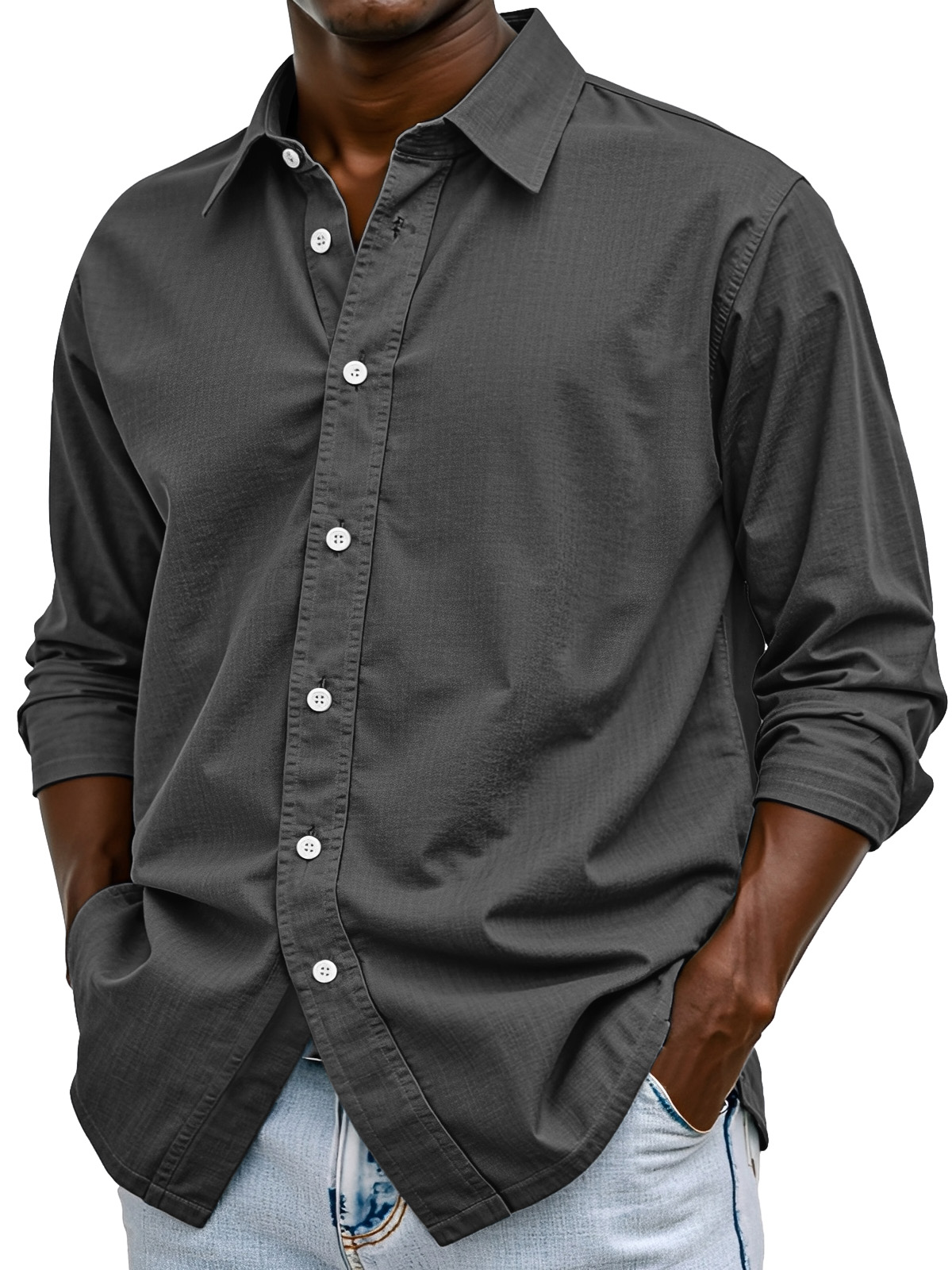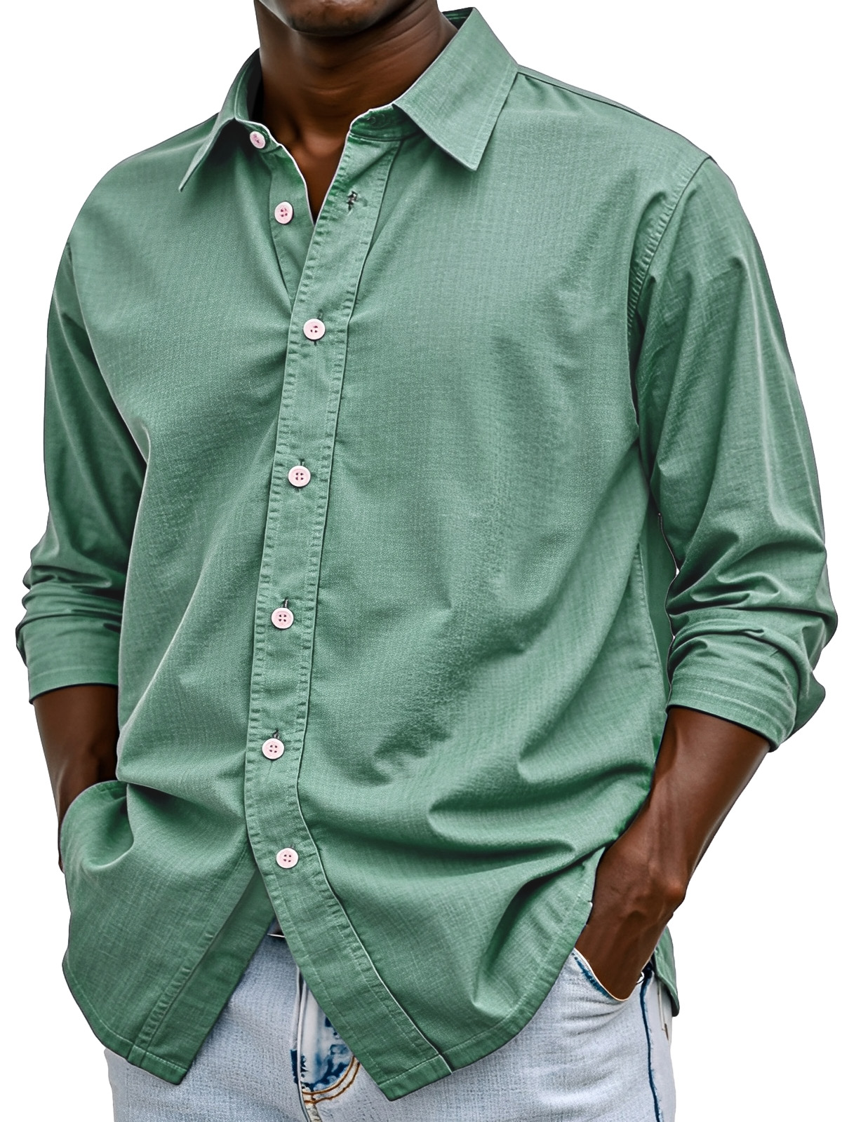 Men's Simple Casual Solid Color Comfortable Loose Lapel Long-sleeved Shirt