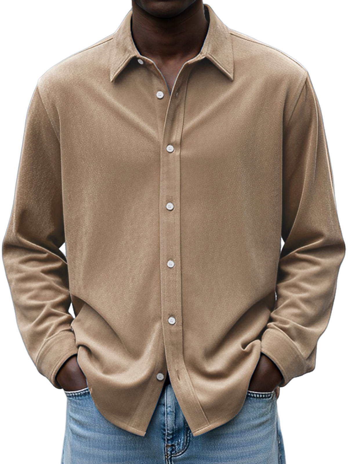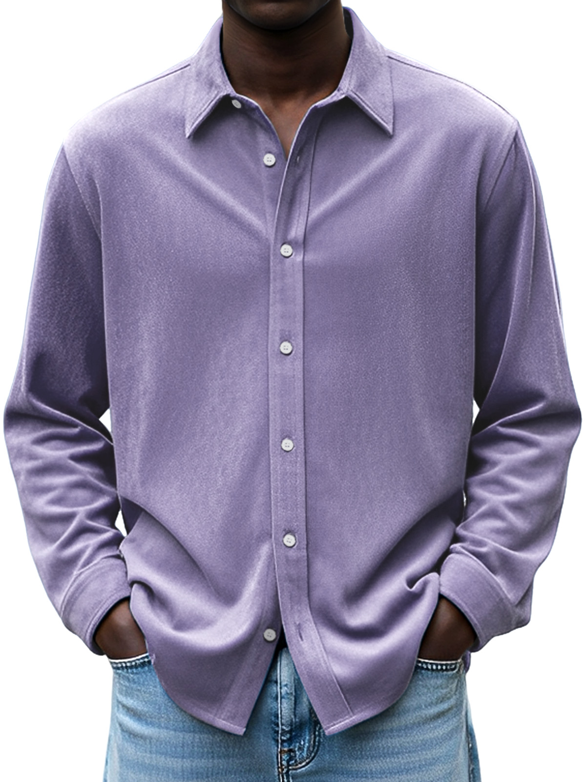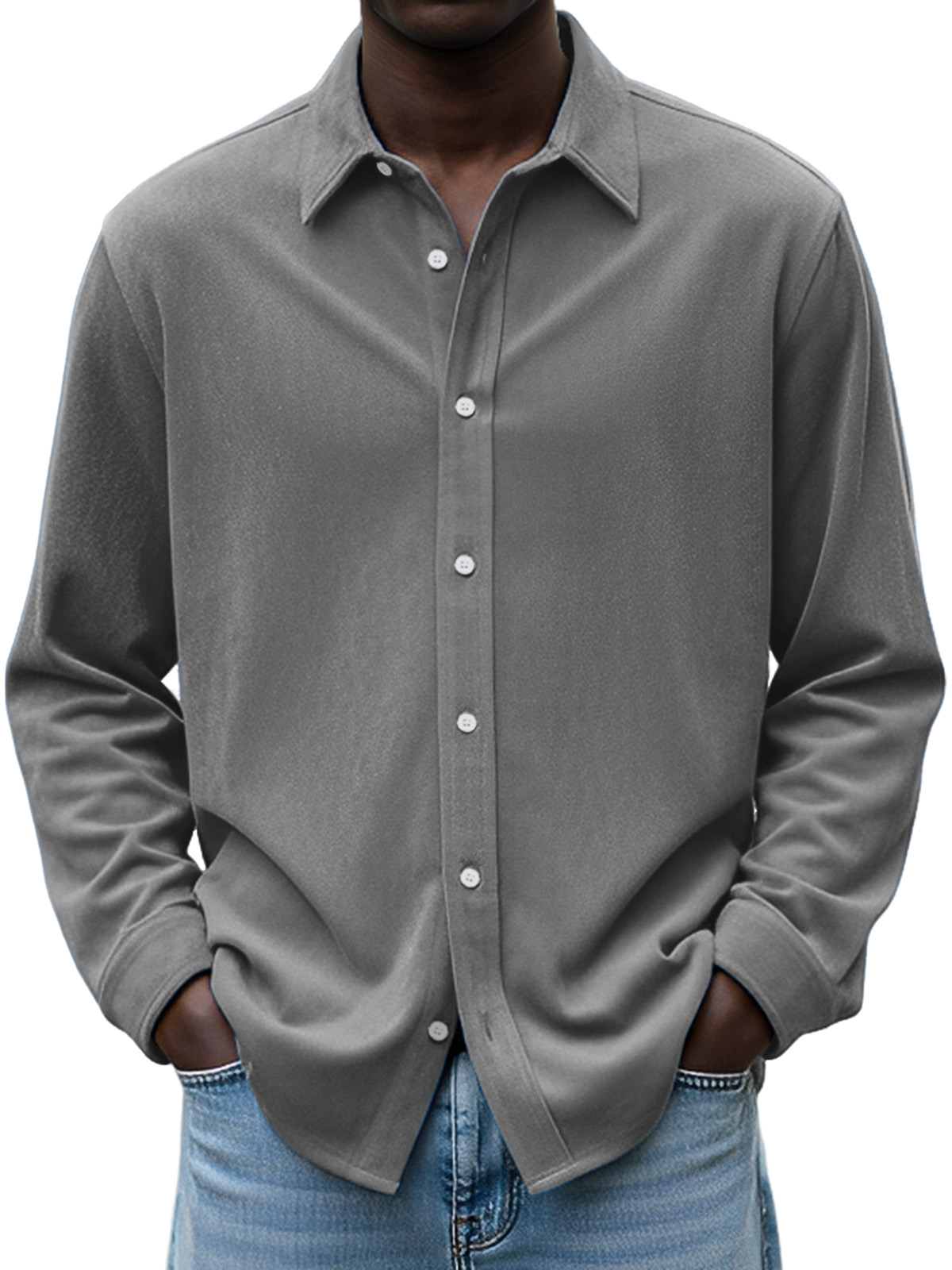 Men's Simple Daily Casual Design Suede Solid Color Lapel Long-sleeved Shirt