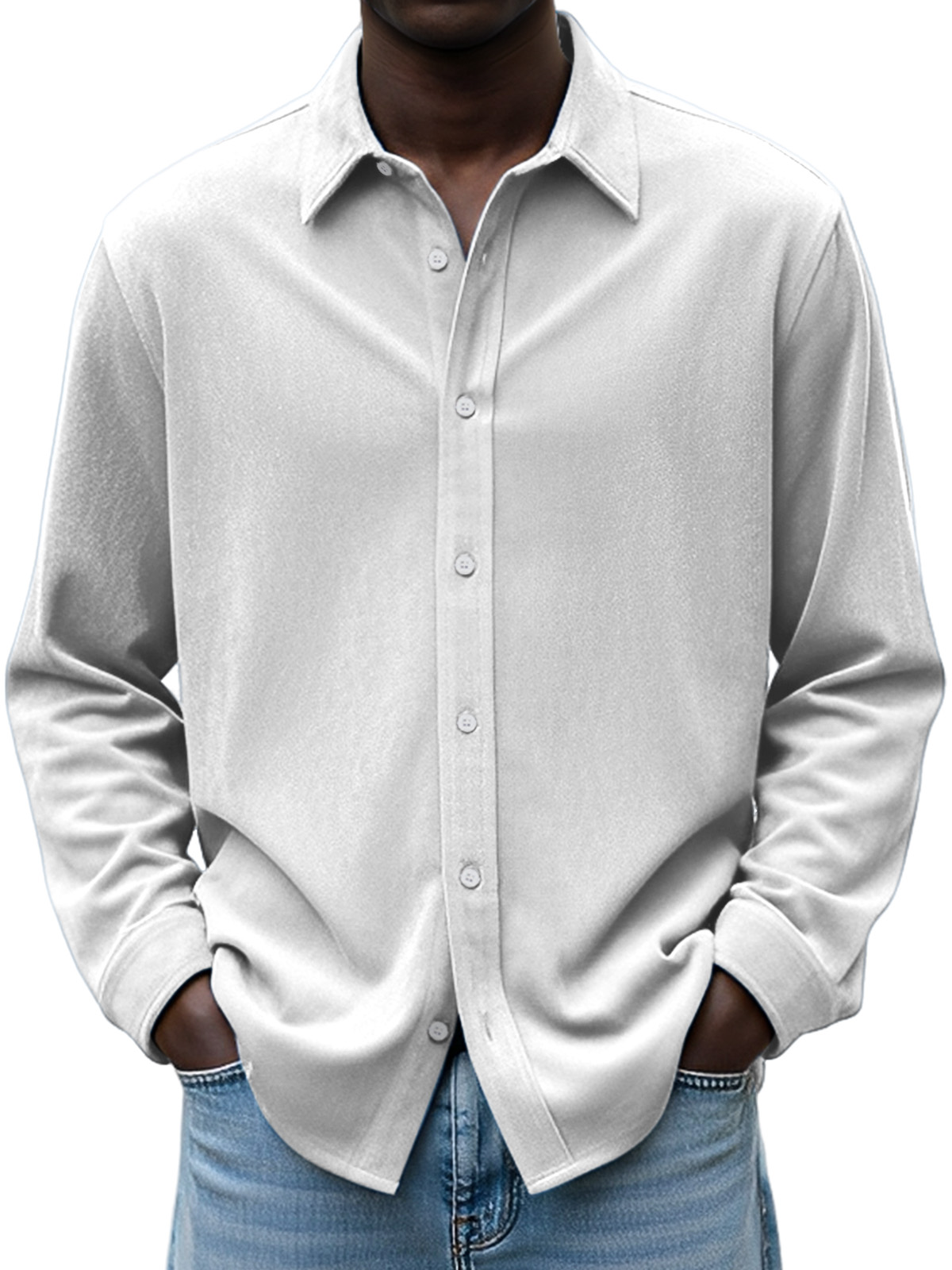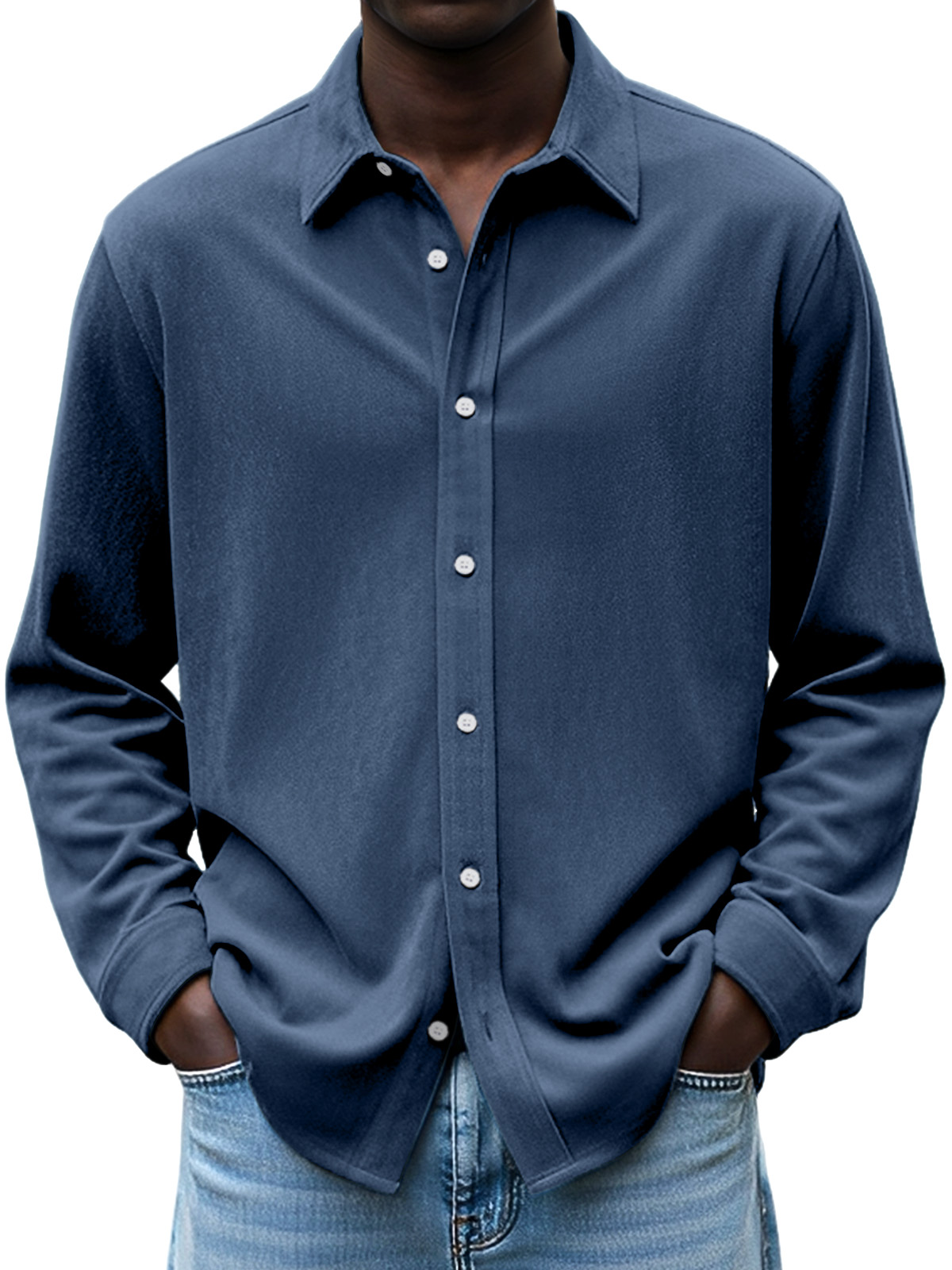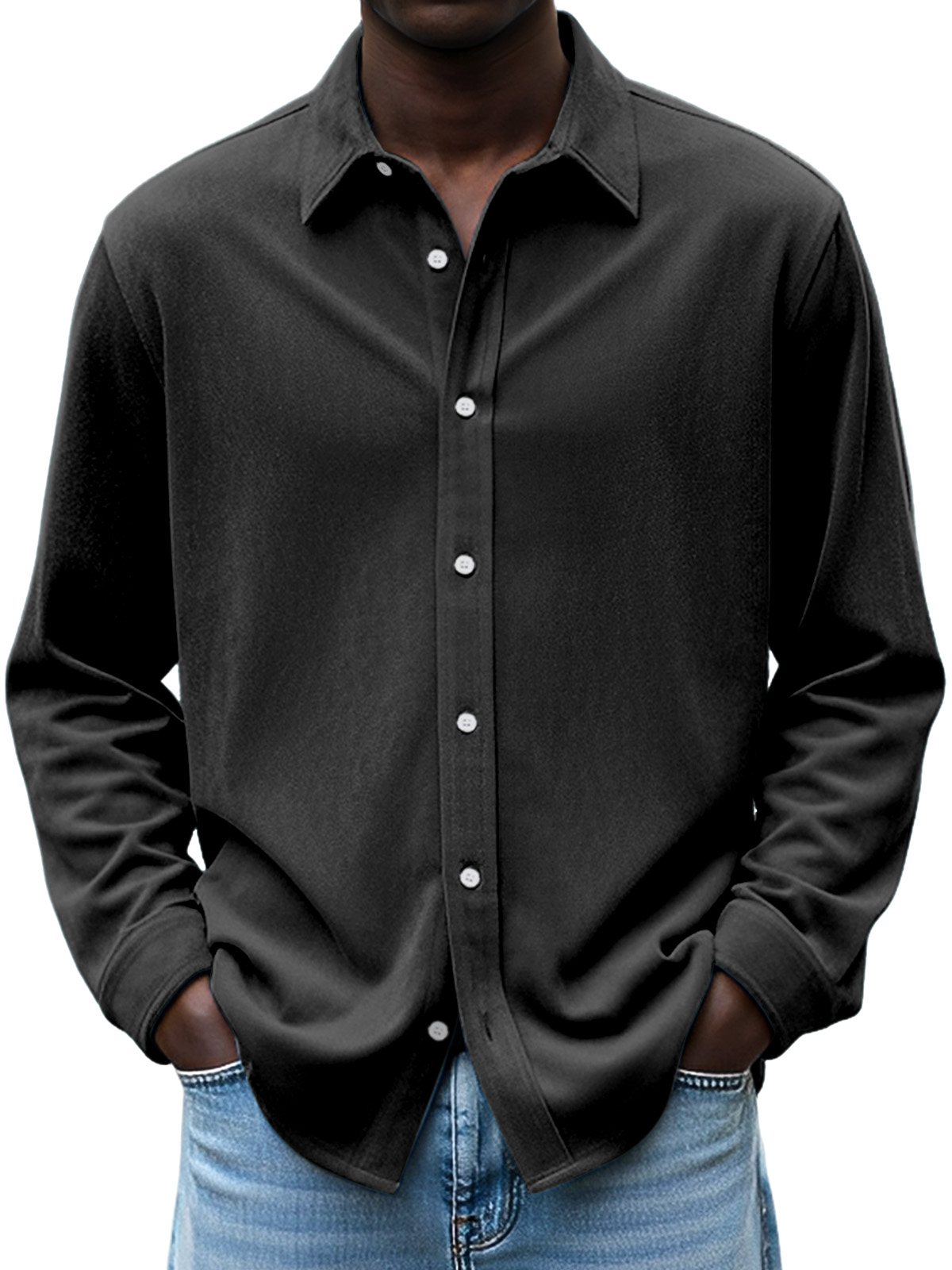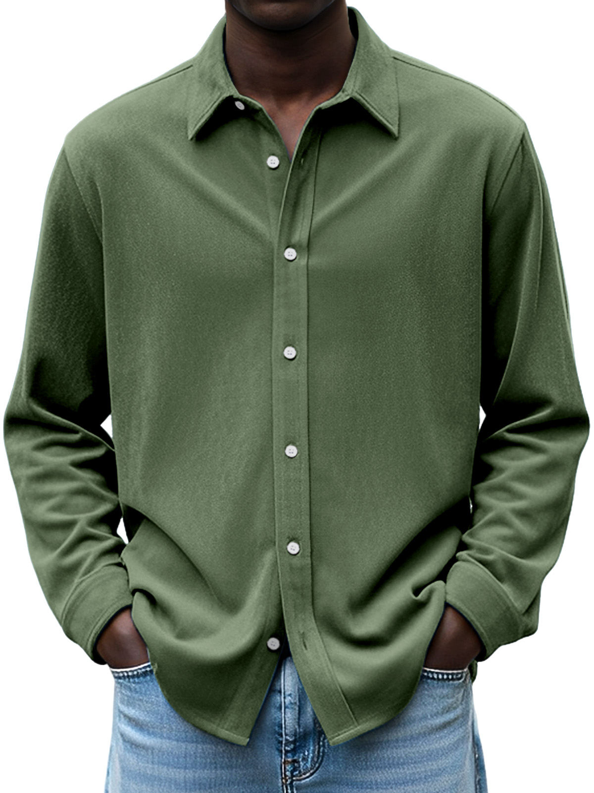 Men's Simple Daily Casual Design Suede Solid Color Lapel Long-sleeved Shirt
