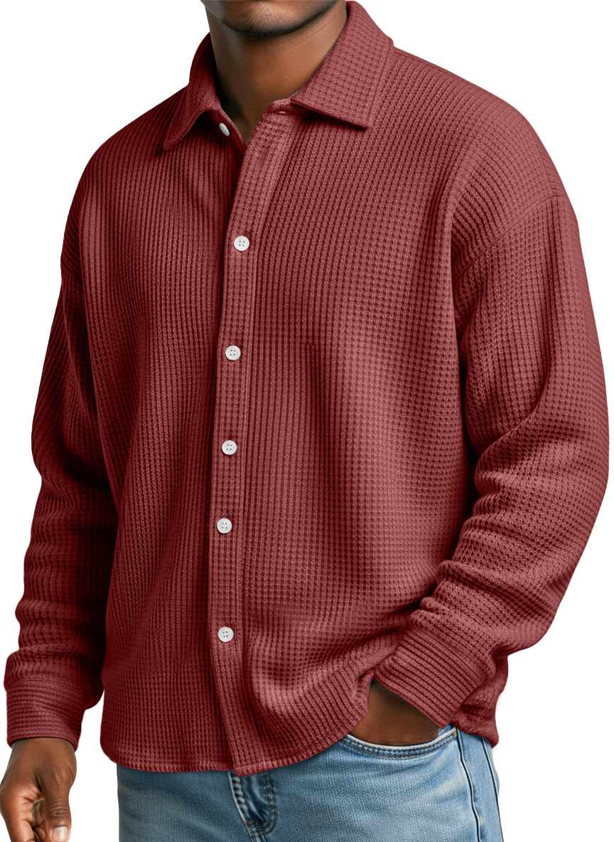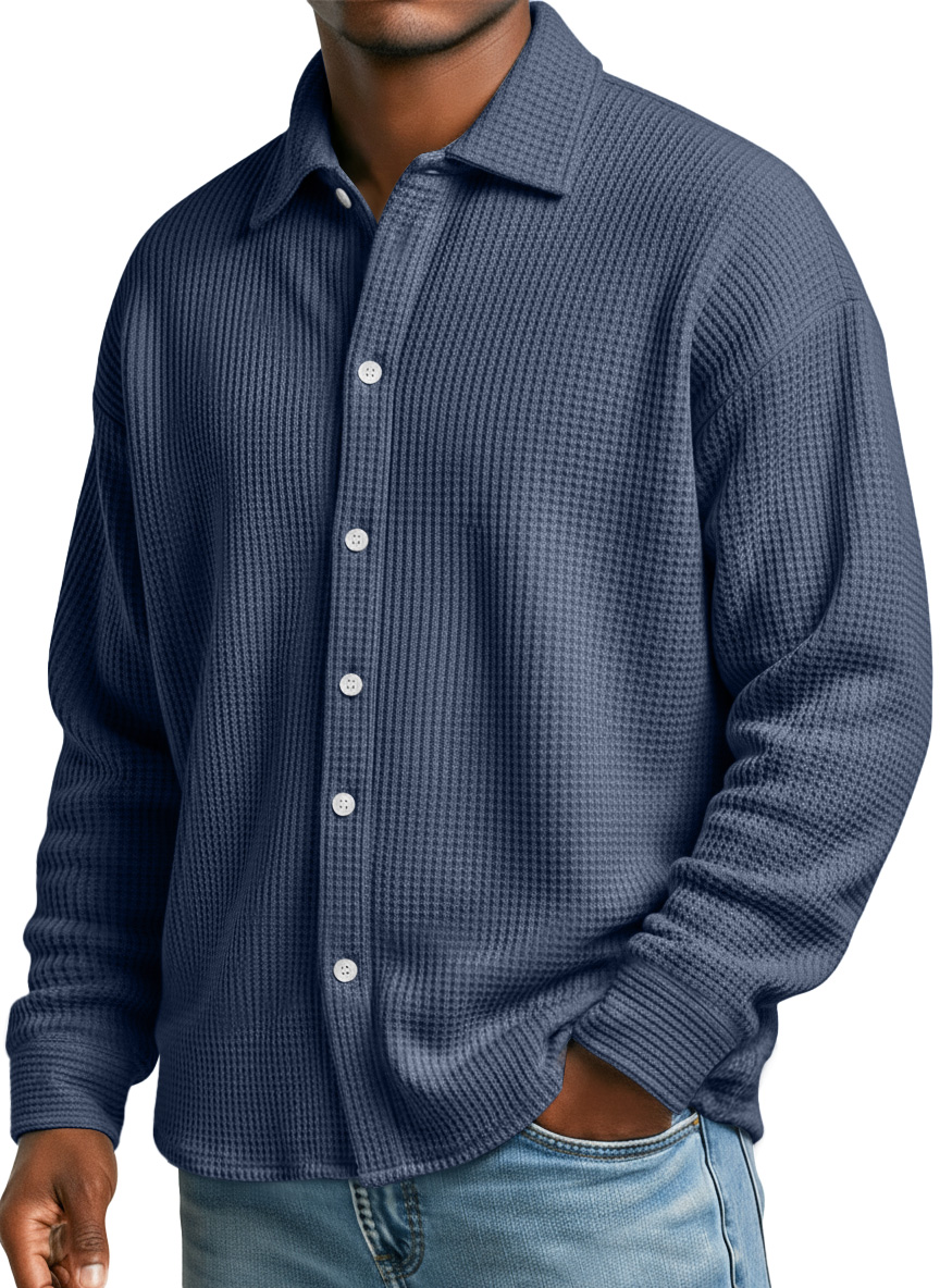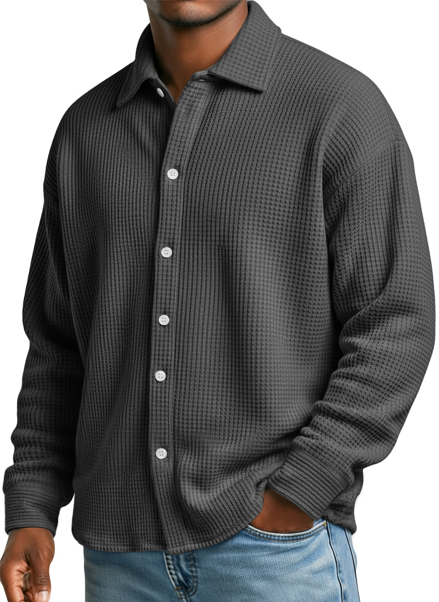 Men's Simple Waffle Texture Casual Loose Long-sleeved Shirt