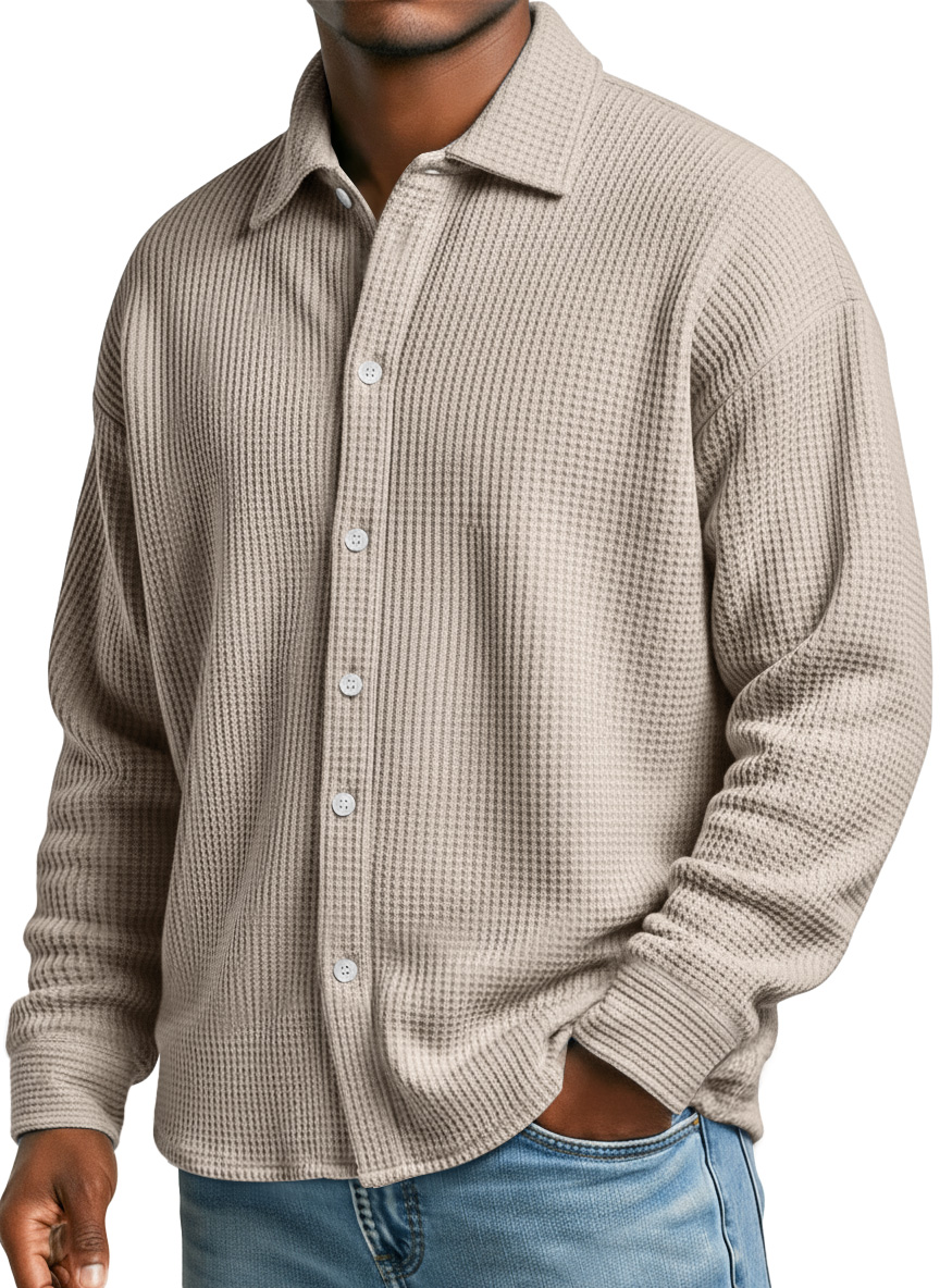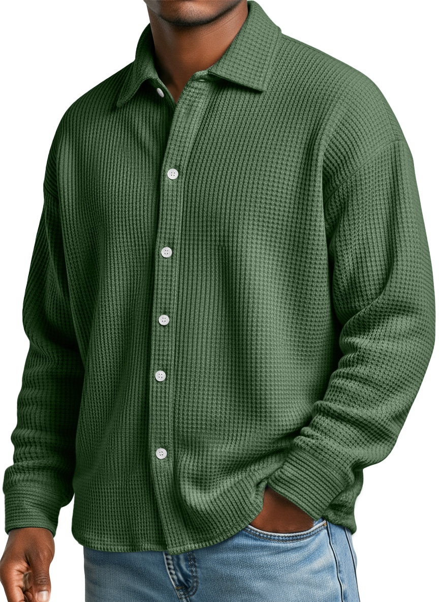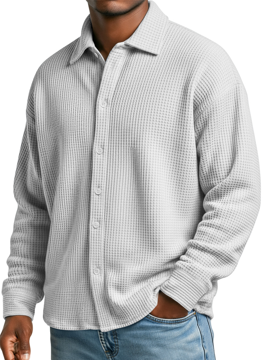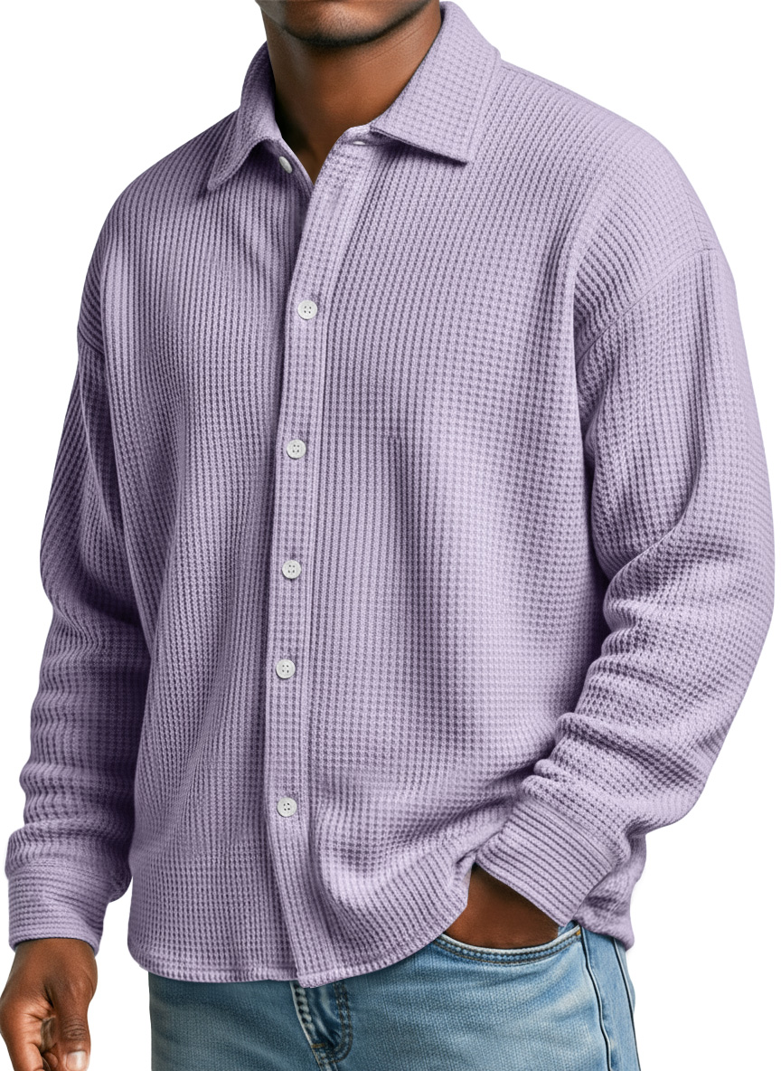 Men's Simple Waffle Texture Casual Loose Long-sleeved Shirt