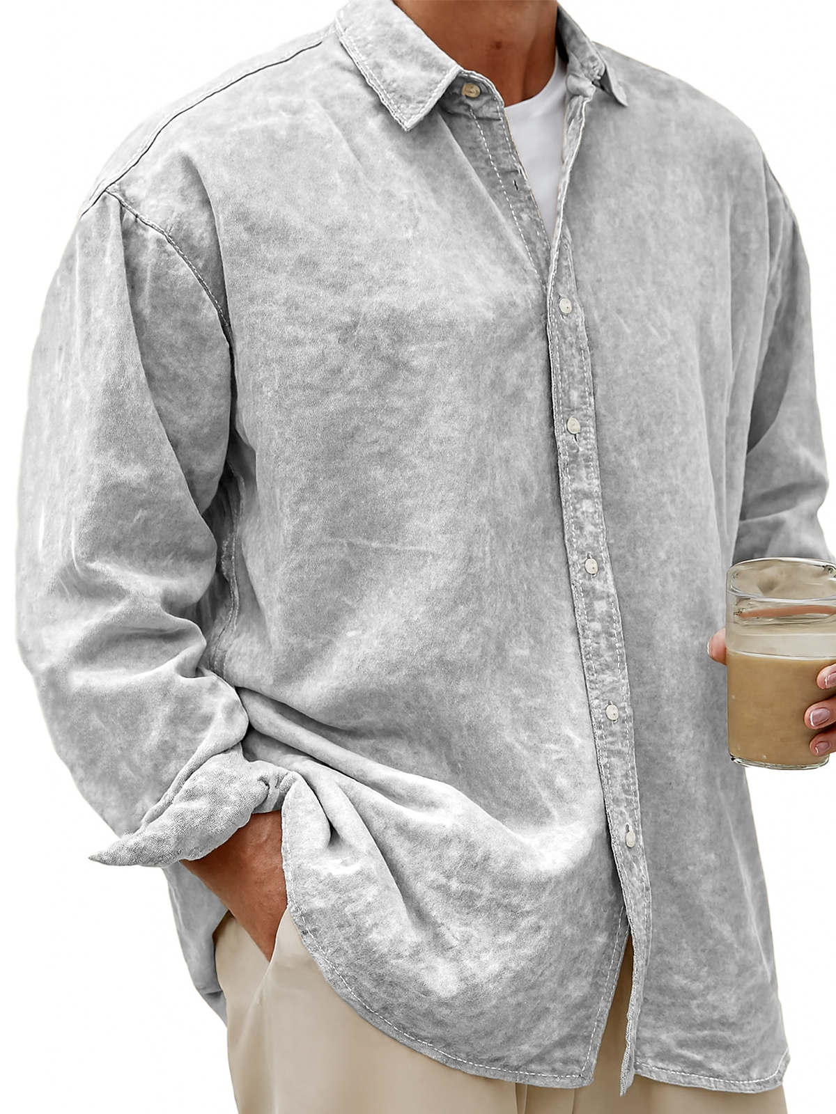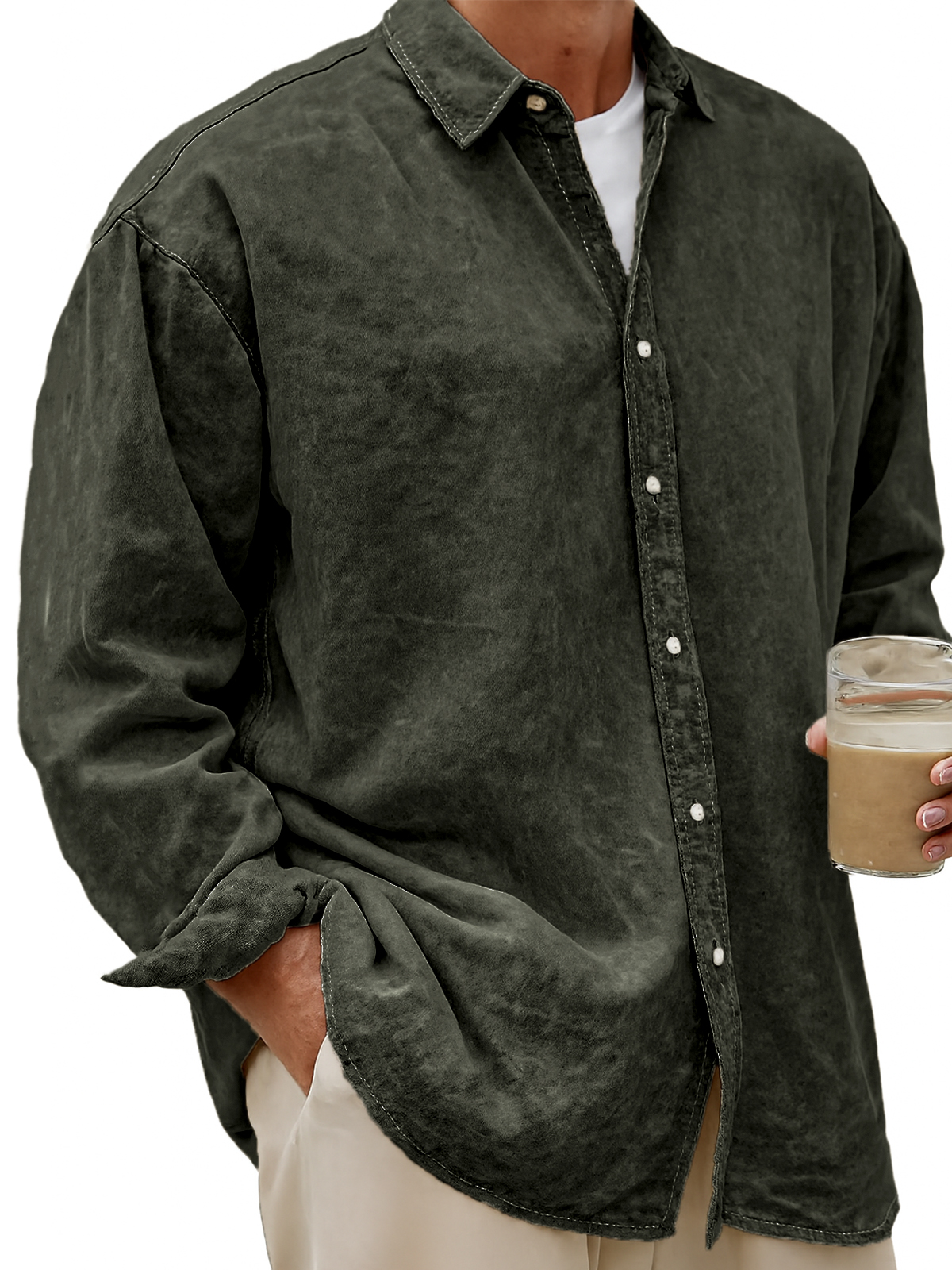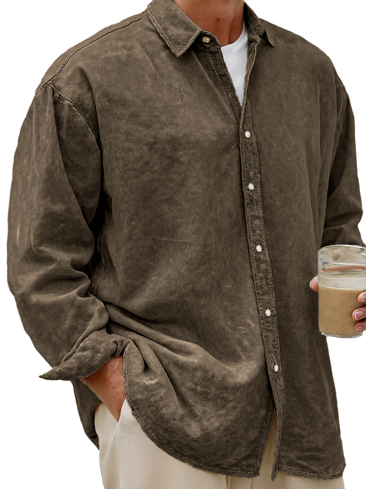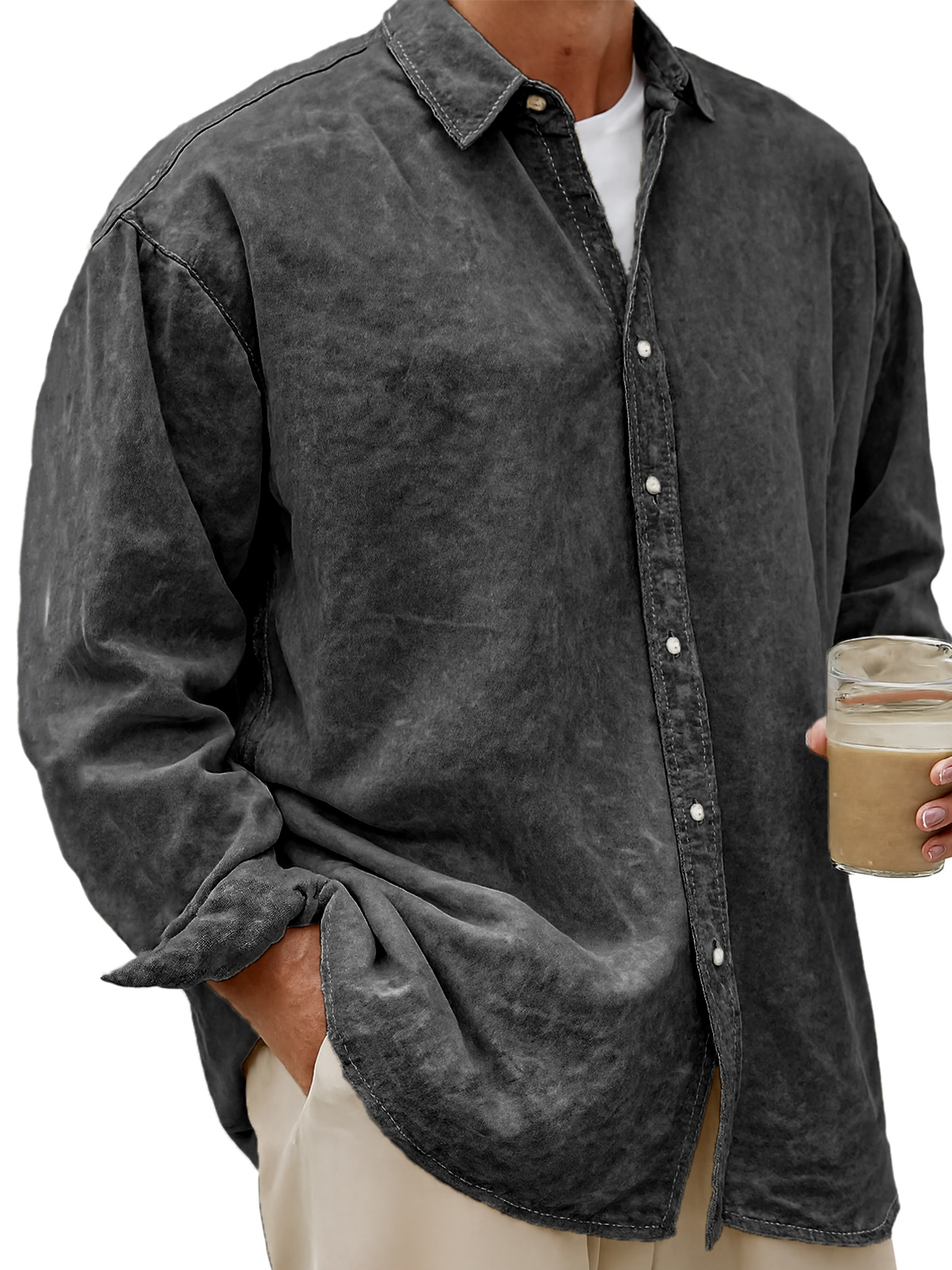 Men's Vintage Dyed Lyocell Casual Everyday Long-sleeved Shirt